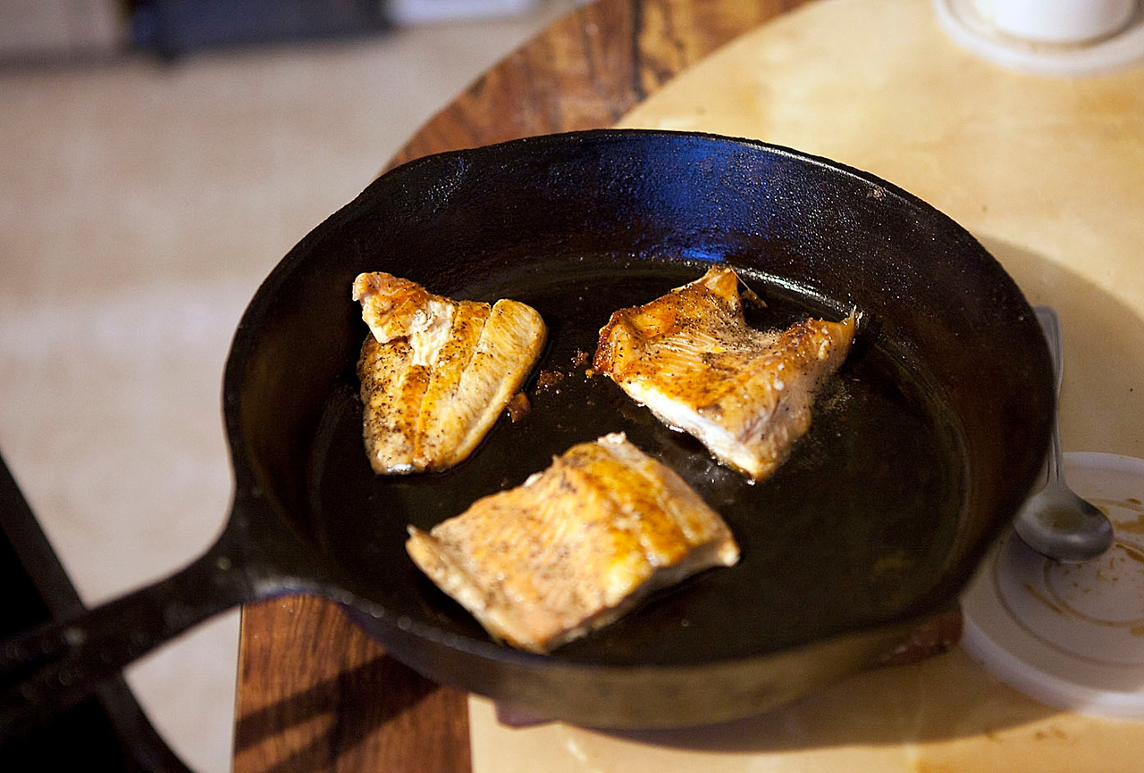 이런 것들이 문명의 이기가 없을 때 이를 대체하는 지혜의 발견이라고 해야 할까. 하여간 고기를 구워주는데 (중국집에서 한 접시해서 난 배는 고프지 않지만) 먹어보니 그것 또한 별미다. 아침에 잡은 고기니 얼마나 싱싱한가나에게 두 토막 주고 영감님은 한 토막만 먹었다. 영감님은 고기 한 토막, 식빵 두 조각에 커피 한잔을 저녁으로 때우고 만다.