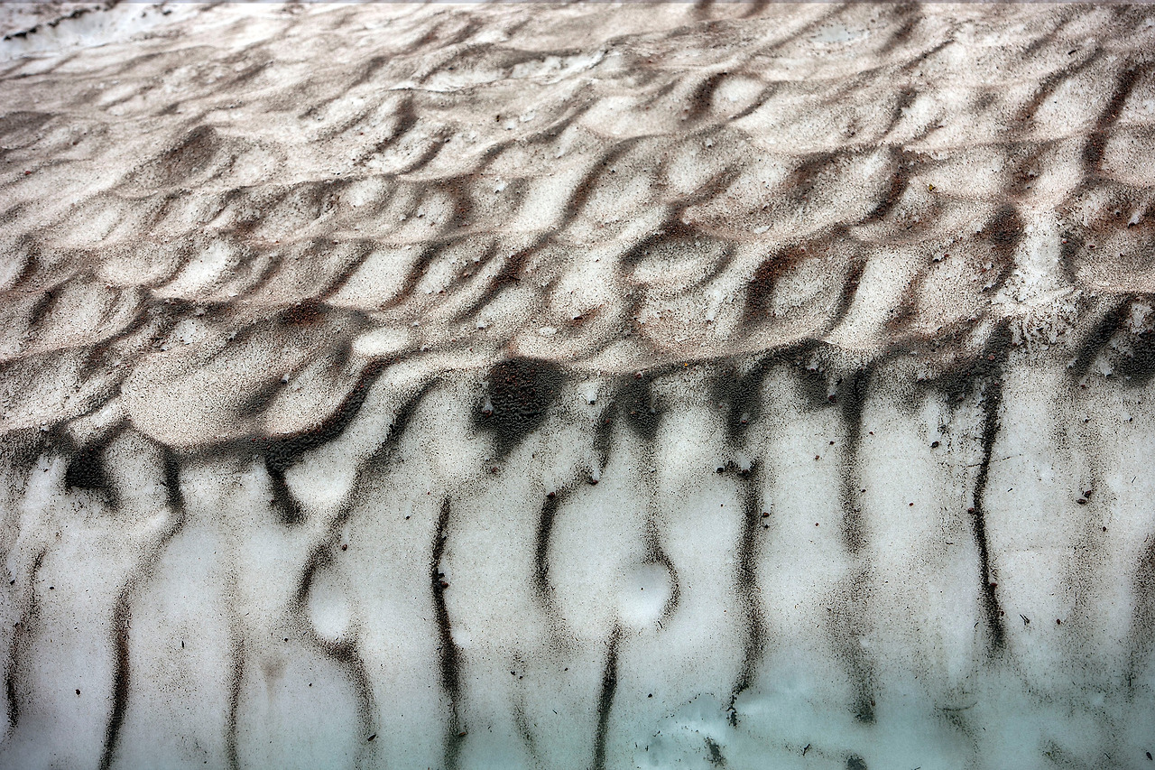 이건 경치가 아니고 도로변에 얼어붙은 눈더미인데 녹으면서 지나가는 차들이 일으킨 먼지들이 달라붙어 퍽 재미있는 무늬를 보여 주길래 찍은 것이다. 꼭 새끼 돼지들이 어미젖 빠는 형상 같지 않나?