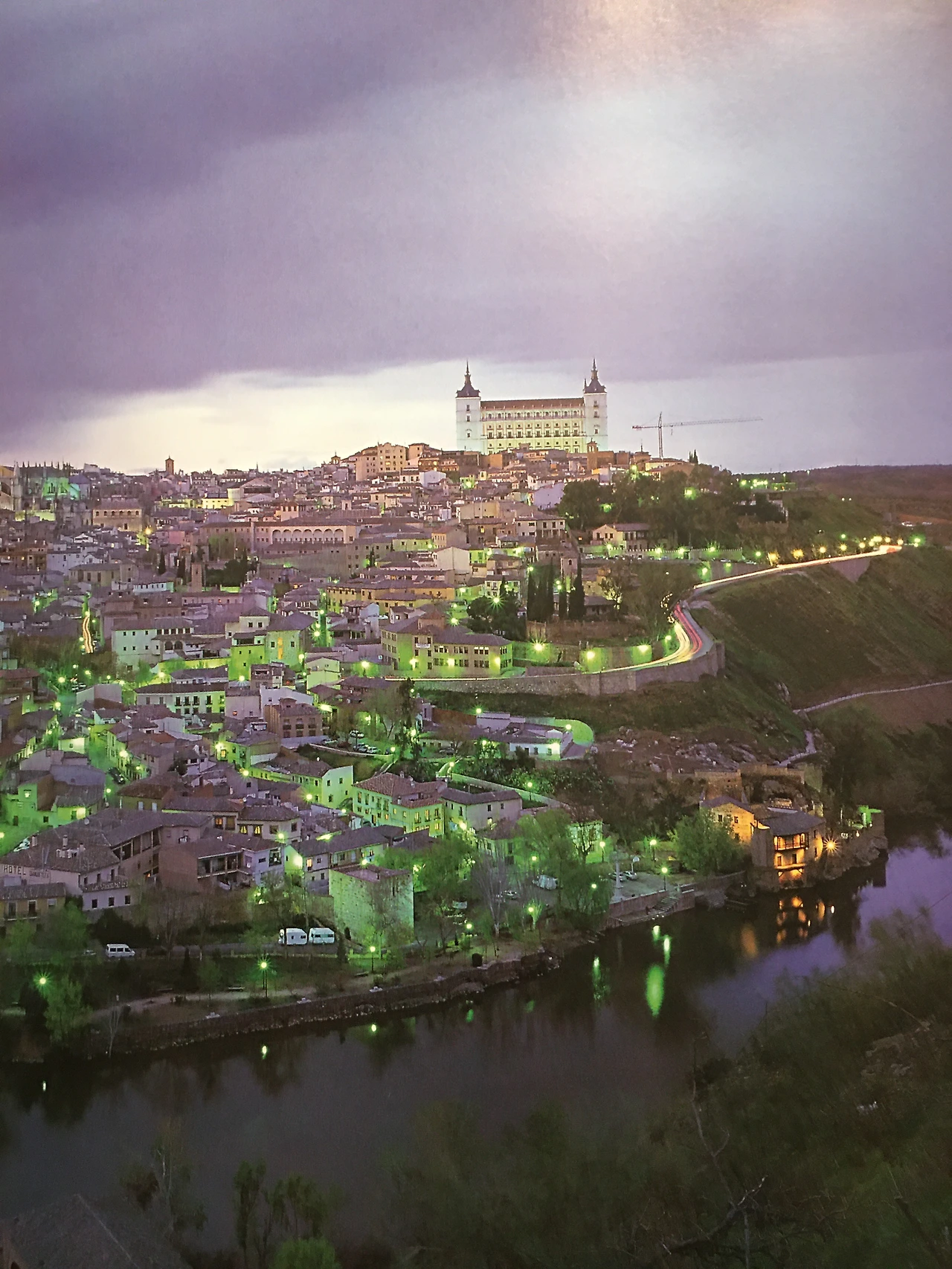 우뚝 솟아있는 요새가 있는 언덕이 해발 580m 높이로 이 근방에서는 제일 전망이 좋은 곳으로 세르반테스 언덕이라고 부른다. 왼편으로 똘레도 성당의 종탑만 보인다.