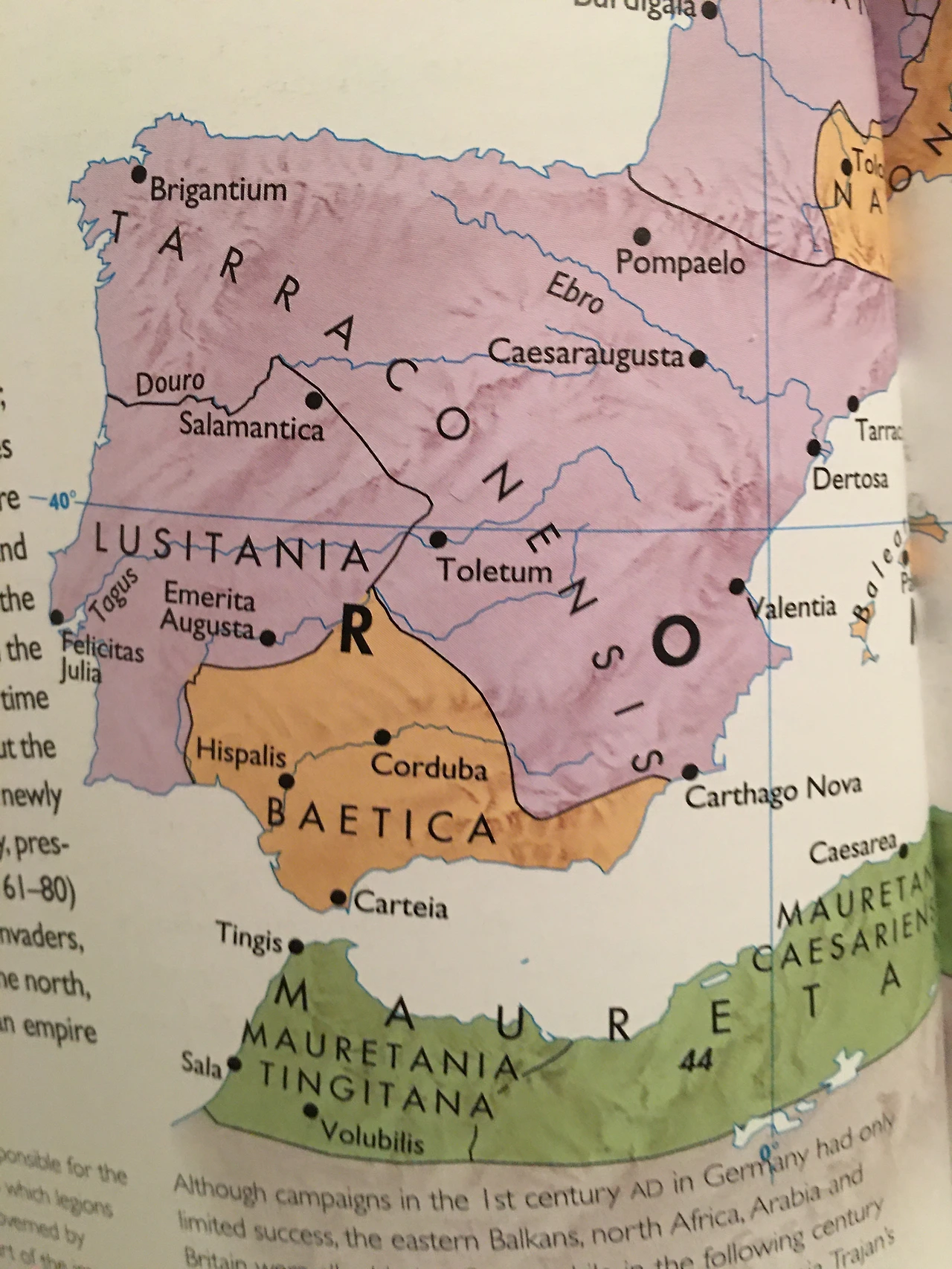 서기 250년경 로마제국 시대의 이베리아 반도의 지도로 Toledo를 그 당시에는 Toletum으로 표시되어있다. 그러니까, 로마 지배를 받을 그 당시에도 번성한 도시는 아니었을지라도 Toledo 마을의 흔적은 찾을 수 있었다.