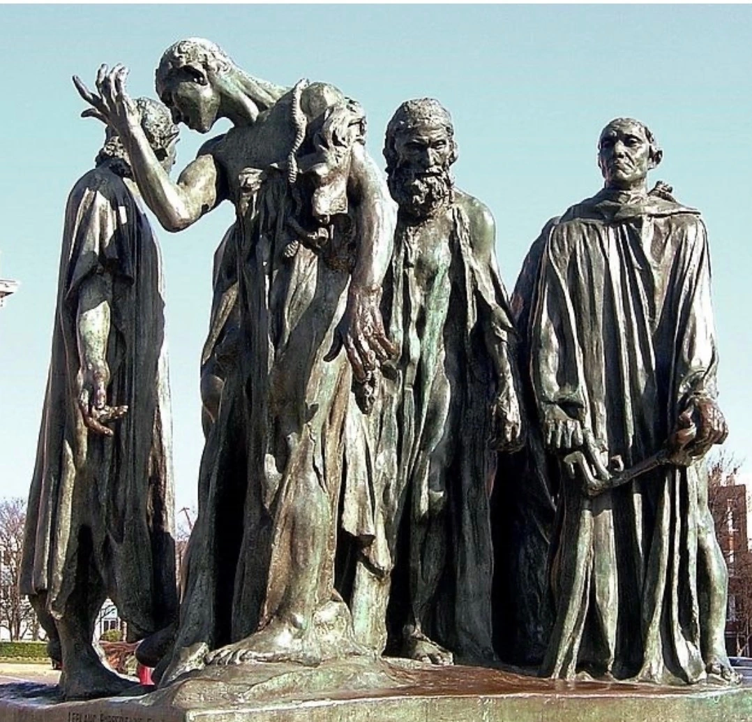 칼레가 지형적으로 도버해협을 건너는 최단 마을였기에 프랑스 왕위 계승 문제로 발발된 영국-프랑스 간에 벌어진 백년전쟁(1337-1453)의 역사적인 한 장소가 되었다. 1347년 영국의 끈질긴 공격을 근 일 년간 막아낸 칼레가 결국 함락되었다. 칼레에 입성한 영국 왕은 그간 *존버 한 칼레 시민을 괘씸하게 여겨 전부 학살하려고 하였다. 그러나, 측근들의 조언으로 마음을 바꿔 시민 대표 6명을 뽑아오면 그들만 참수하고 나머지 칼레 시민을 살려 주겠다고 약속하였다. 이 말을 들은 칼레 시민들은 대표 6인을 어떻게 선발할지 곤경에 빠지게 되었다. 그러던 중, 상류 부유층에 속하는 한 사람이 자발적으로 죽음을 자처하고 나섰다. 다른 시민들보다 그간 잘 먹고 여유 있게 살았으니 여한이 없다는 그럴듯한 변명을 입에 달았다. 그러자, 그를 이어 고관 관료와 부유층이 자발적으로 나와 6인 대표가 선발되었고, 영국 왕 요구대로 목에 밧줄을 걸고 포대자루 옷을 입고 처형장으로 끌려 나왔다. [바로 이 순간을 묘사한 청동 조각상을 1889년에 세계적인 조각가 오귀스트 로댕이 만들어 칼레에 세워 놓았다] 처형하기로 한 6인의 대표는 당시 수태한 영국 왕비가 6인을 처형한다면 태아에게 불길한 일이 생길 것이라고 왕을 설득하여 처형을 면했다고 한다. 이런 6인의 대표가 보여준 자발적 희생정신이 노블레스 오블리주(Noblesse Oblige)로 귀족의 의무를 다한다는 의미이다.
