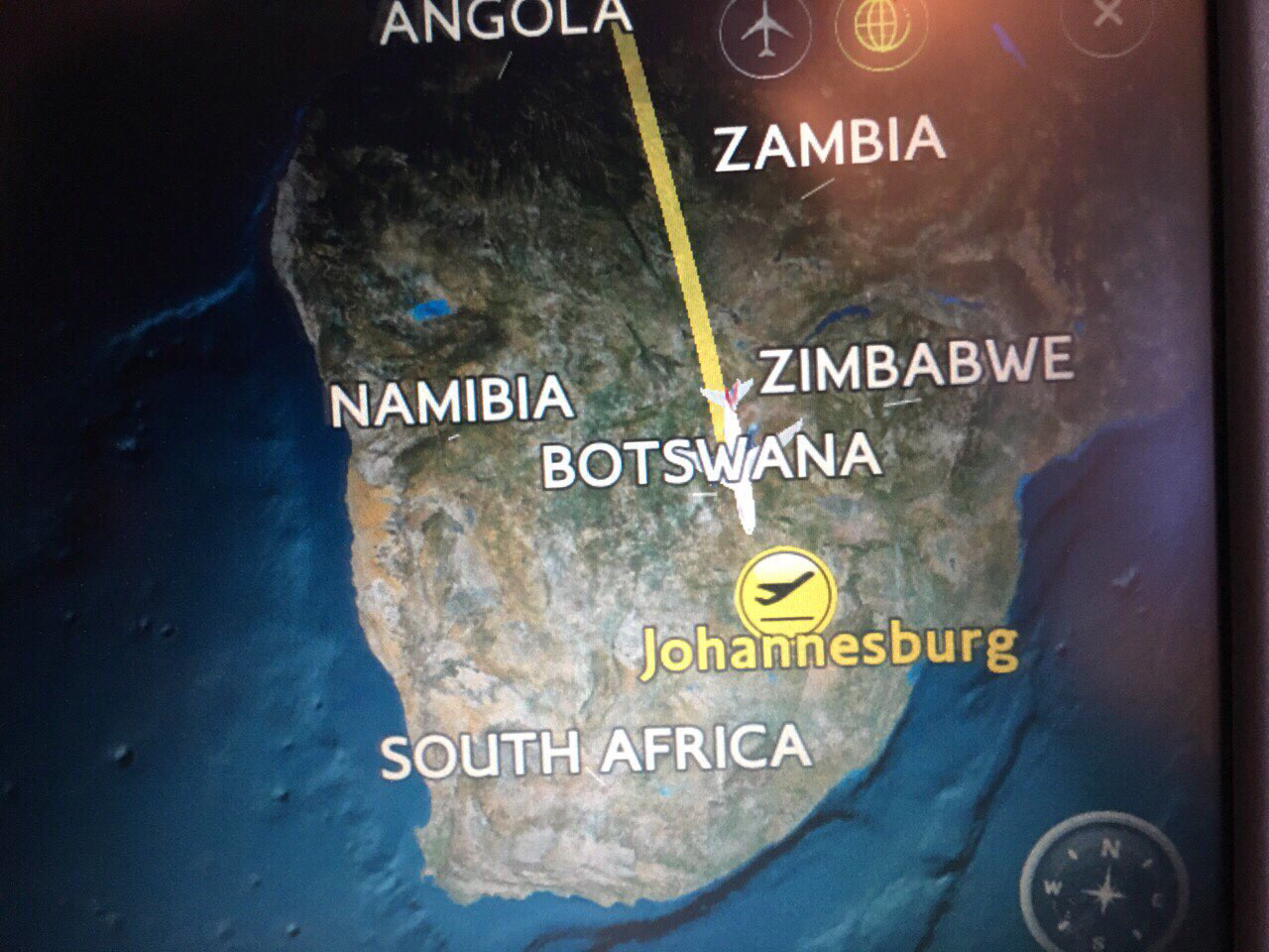 내가 비행기를 타자마자 잠에 떨어져서 한 두 시간 정도 자고 일어났는데도 비행기는 지중해 위에 그림처럼 떠 있었다. 조금 뒤에 지중해를 지나 튀니지 상공을 가로 지른다. 저녁 7시에 출발했으니 튀니지 상공에 왔을 때가 밤 10시가 좀 넘었다. 창 밖을 바라보니 띄염띄염 불빛을 이루는 마을이 여기저기 흩어져 있다. 저 밑에 사람들이 오손도손 살고 있구나, 저기가 아프리카 땅인데 어떤 사람들이 살고 있을까 튀니지로 한번 가보고 싶은 생각이 구름처럼 일어났다가 사라진다. 현재의 튀니지가 고대 페니키아가 일어난 곳으로 저번에 시실리 여행기에 조금 올린 포에니 전쟁에 나오는 카르타고의 근거지로 포에니 전쟁에서 패배하여 로마가 지배하였고 그래서 튀니지에도 옛 로마 유적이 남아있어 유네스코 세계 유산으로 많이 지정되어 있어 많은 여행객들이 찾는 곳이기도 하다. 튀니지의 남쪽 국경을 통과한 비행기는 알제리와 리비아 중간으로 계속 남하 비행하여 이번에는 NIGER와 CHAD 중간을 날아 내려가 카메룬의 오른쪽 국경을 통과하면서 중앙아프리카 공화국, 적도기니어를 지나 콩고 공화국과 바로 밑에 있는 콩고민주공화국을 지나 잠비아와 보츠와나를 지나 남아공으로 들어서는 모양이다. 새벽에 해가 뜨면 비행기에서 아프리카 땅을 내려다 볼 수 있을 것 같다. 가만 생각해보니 아프리카 대륙 땅을 이전에 두 번이나 밟은 적이 있었다. 첫번 째는 2009년 11월에 지브랄타에서 차를 페리에 싣고 모로코로 들어가서 검은 대륙을 처음으로 만나 보았고, 두번 째는 2010년 이집트로 들어가서 카이로에서 아부심벨까지 기차로 다닌 적이 있었다. 근데 모로코나 이집트는 무슨 이유인지는 몰라도 아프리카라는 냄새가 좀 덜 나는 것 같았다. 사파리 동물이 없어서 그런 것 같기도 하고 지중해를 사이에 두고 유럽대륙과 너무 가까이 있어서 그런 것 같기도 하다.
