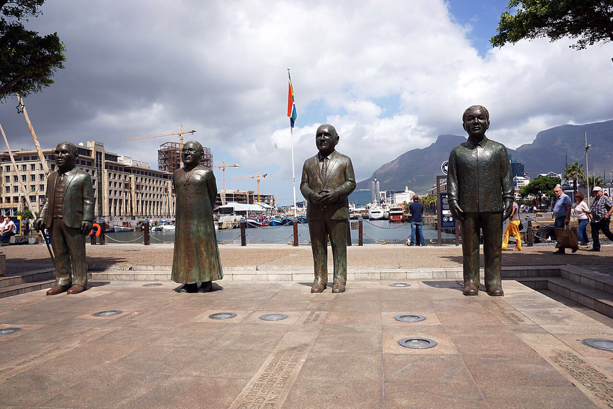 남아공의 역대 노벨 평화상 수상자들을 노벨광장에 한자리로 모셔 놓았다. 좌로부터 앨버트, 투투 대주교, 프리드릭 전대통령 그리고 만델라.