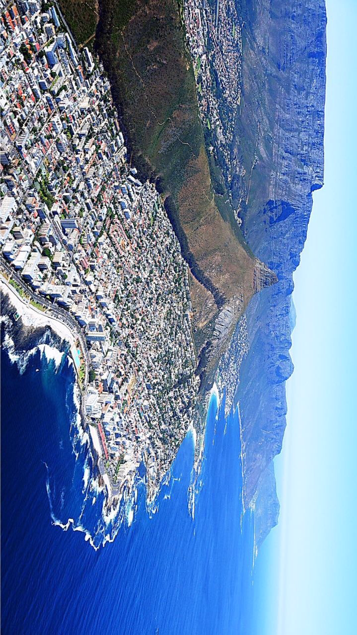 bucket.'라고 하는데 큰 바께스 속의 한방울 물은 있으나 마나한 그런 수준이라는 뜻이다. 1시간 비행은 진짜로 아무 것도 아니었는데 케이프타운가까이 오자 특히 오른쪽 창문에 앉은 사람들이 탄성을 지르기 시작하는데 저 멀리서 테이블마운틴이 보이기 시작했기 때문으로 그 때는 창문가에 앉지못한 것이 진짜로 애석하였다. 언뜻 보니까 밥상같이 윗면이 평평한 검은 바위가 넙적하게 아주 길게 퍼져 있었다. 그러니, 담에 요하네스버그에서 케이프 타운으로 들어가는 사람은 무조건 뱅기 오른쪽 창가에 앉도록 하는게 구경 잘하는 지름길이다. 중요한건 테이블 마운틴 사진을 찍을 수 있기 때문이다.
