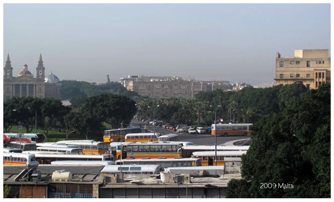 말타 시내버스 종점. 분수대가 오른쪽 옆에 있다.