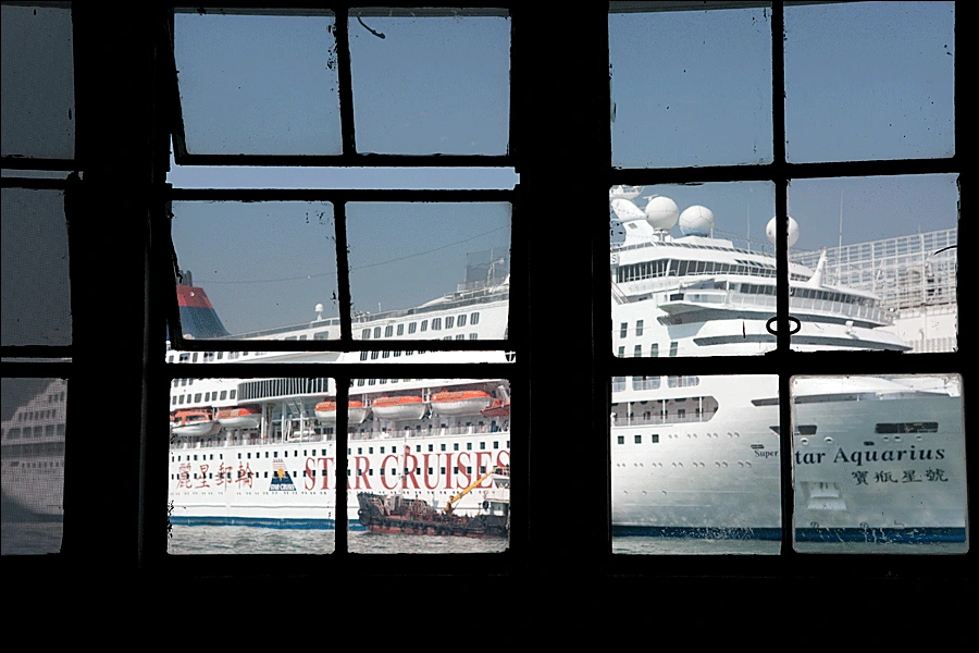 대형 크루즈 관광선이 정박되어 있다. 건너가기 전 침사초이에서 바라본 것이고