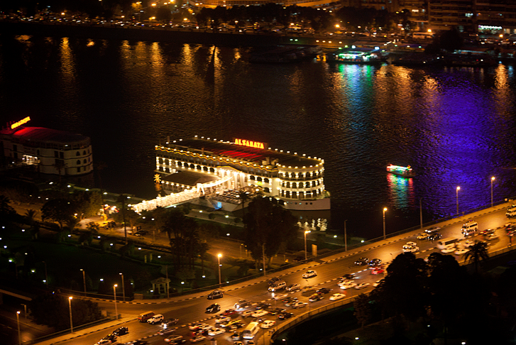 나일강변의 선상 유람선도 불이 켜지고 가로등도 밝혀진다. 하루를 마감하고 귀가하는 차들로 길이 붐빈다.
