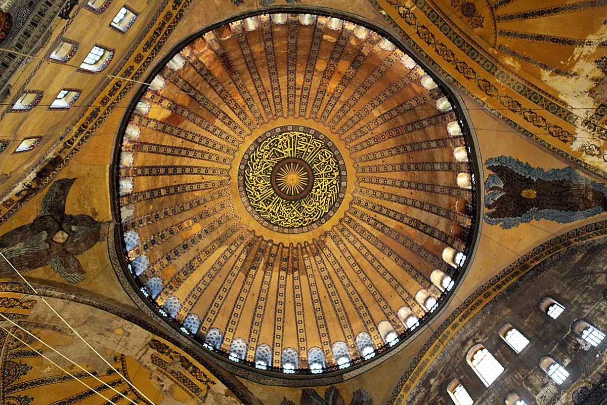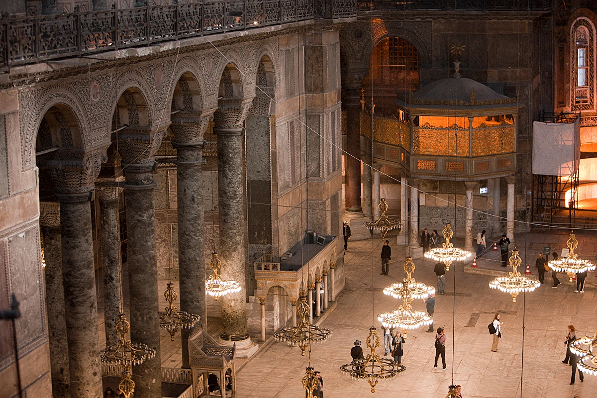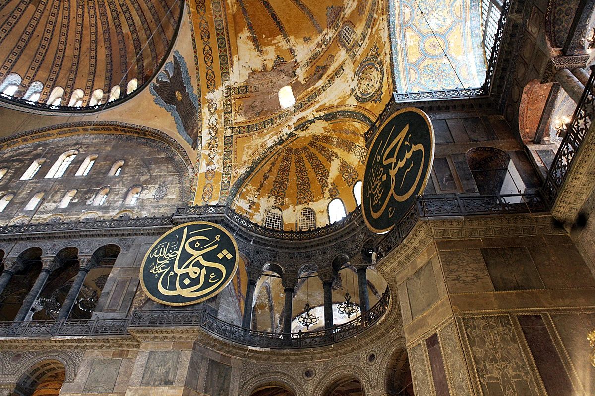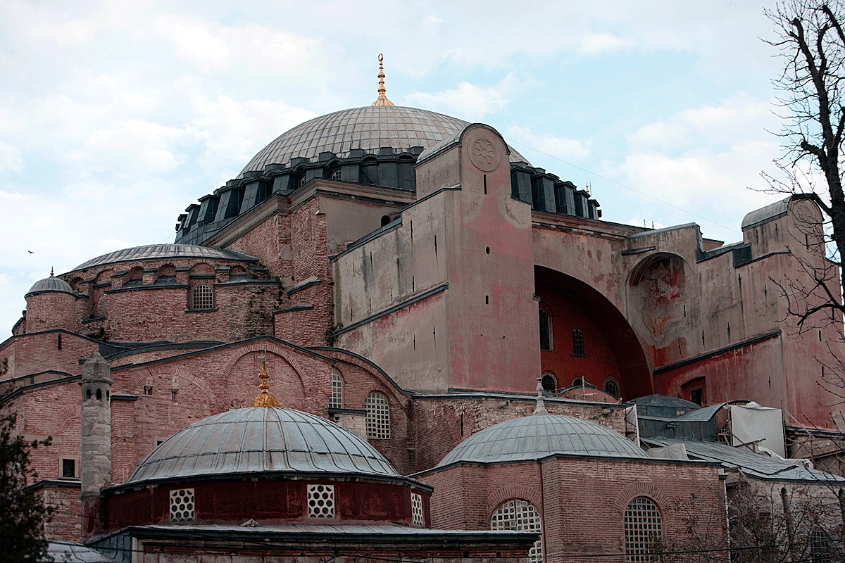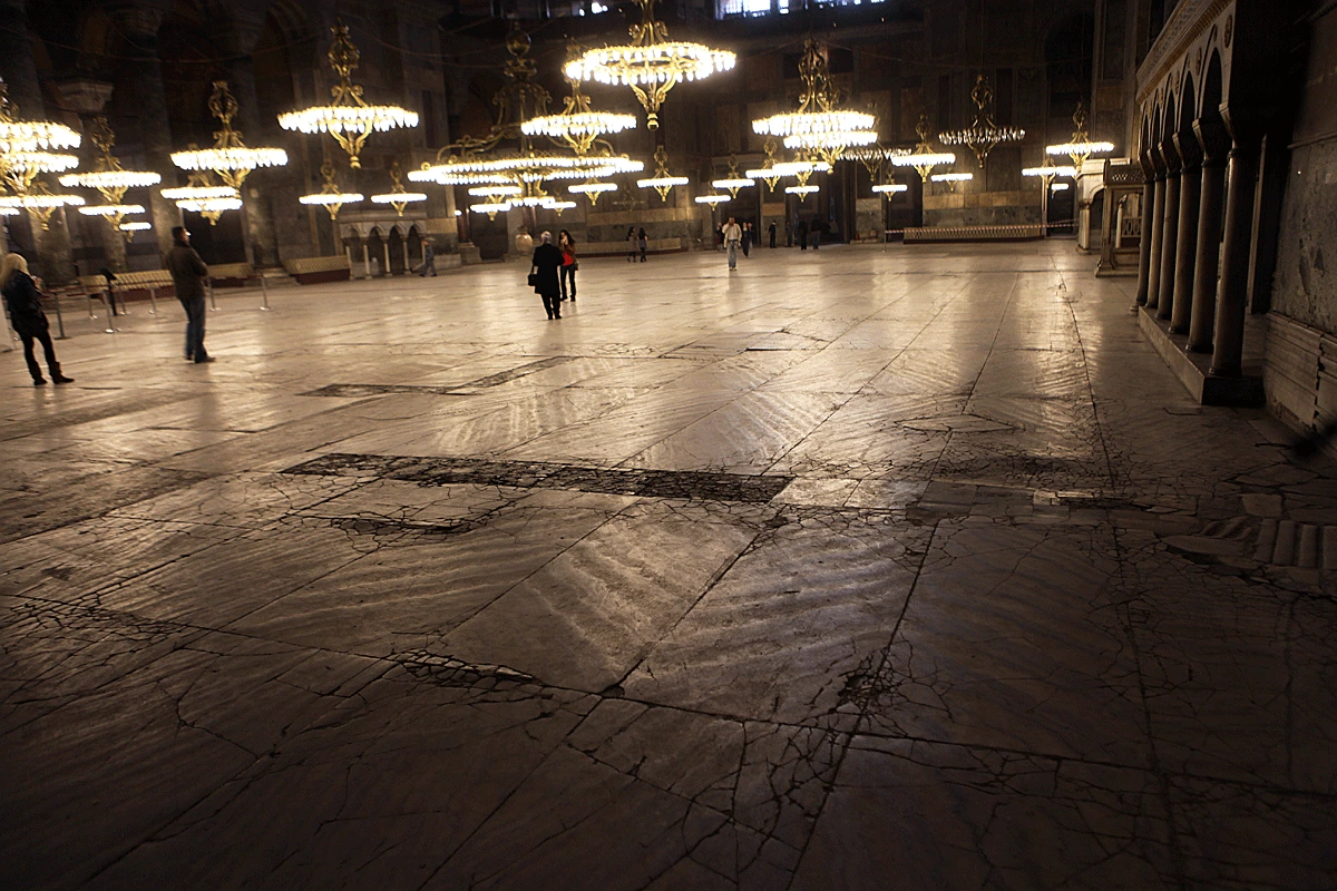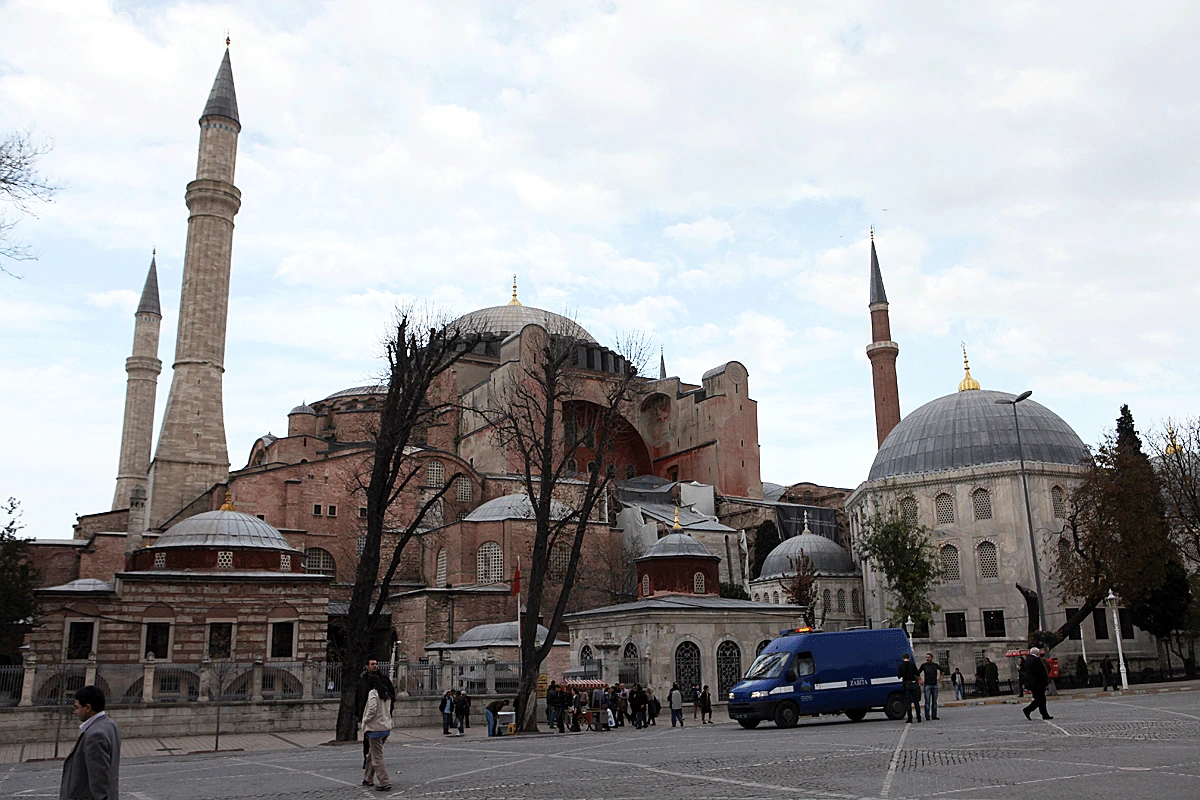 내가 얼마나 건강한지 호텔 책인하자마자 바로 앞에 있는 아야 소피아 성당으로 달려 갔다. 길건너 백미터 정도만 가면 성당이다. 뒤에 알고 보니 이 자리가 아야 소피아 성당, 그 맞은편에 블루 모스크, 성당에서 조금만 올라가다 왼쪽으로 꺽어지면 톱카프궁전이 있어 볼거리는 이 거리에 다 모여있다. 아야 소피아 성당의 이력은 “360년 콘스탄티누스 2세에 의해 건립되었으나, 심한 화재와 전란으로 무너진 것을 테오도시우스 2세가 재건에 착수하여 537년에 비잔틴 미술의 걸작으로 꼽히는 이 성당이 건립됨. 오스만터키에 의해 동로마가 정복되자, 이 성당은 이슬람교 사원으로 바뀌었음. 소원이 이루어지는 기둥이 이 성당안에 있어 정면에서 2번째 문으로 들어가면 왼쪽에 ‘축축한 기둥’이라는 것이 있는데 이 기둥 동판에 구멍이 뚫려 있어 엄지 손가락을 넣고 한바퀴 돌리면 된다고 함. 2층 갤러리로 올라가서, 남아있거나 복원된 모자이크화를 감상하시길” 여기까지가 어느 분이 아주 간략하게 요약해서 보내 준 것인데 시간없어 그대로 인용한다.