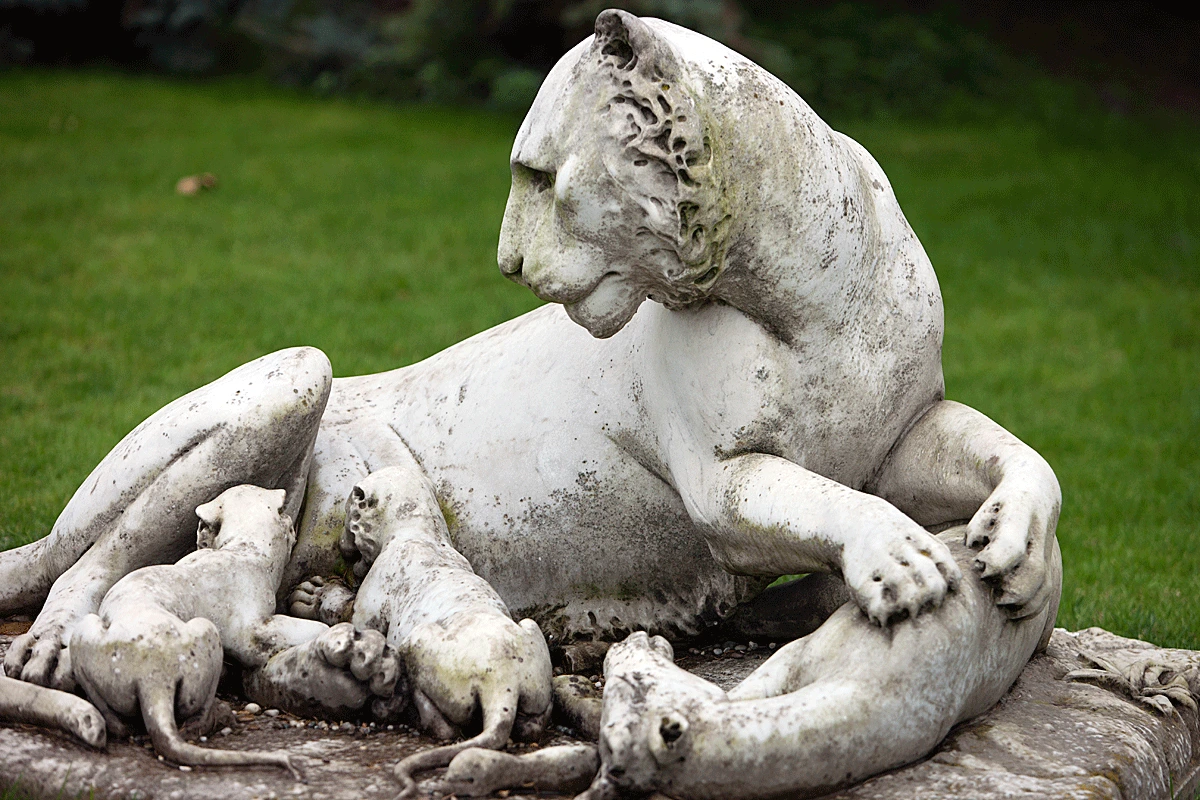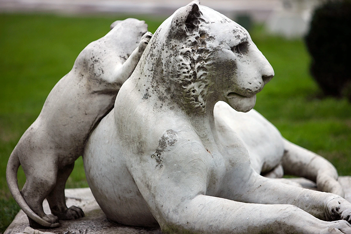 분수대지나면 암사자가 새끼들 젖먹이고 같이 노는 조각상이 좌우로 있다.