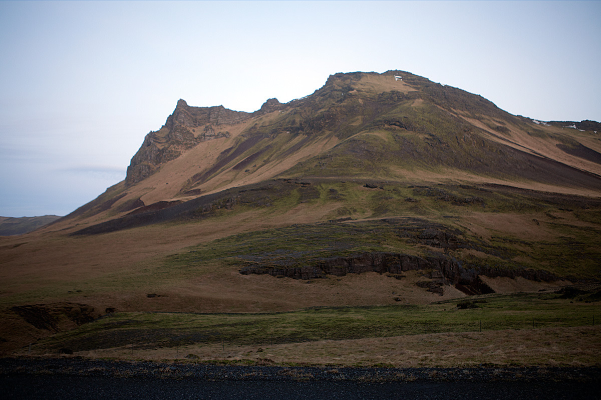 남쪽으로 더 내려가 보니 해안선은 저만치 있어 잘 보이지는 않고 저런 돌산만 눈길을 끈다. 그런 병풍같은 돌산아래 말을 키우는 목장들이 간간이 보일 뿐이다. 내가 오기 전 1주일전에 눈이 왔다는데 남쪽에는 다 녹아 눈은 보이지 않는다.