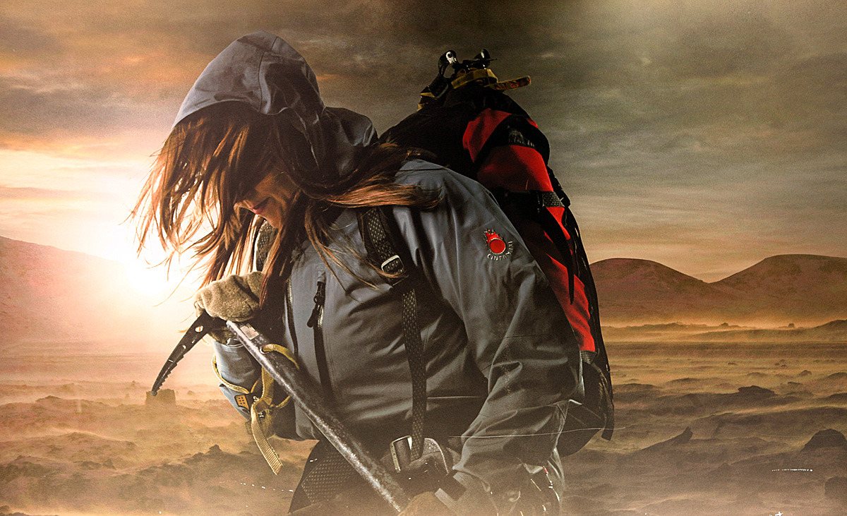 힘든 자연환경에 도전하는 산사나이가 아니고 산아지매의 연출된 표정이 조금은 어색해 보이는데 그러나 뒷 배경 사진이 매치가 안된다.