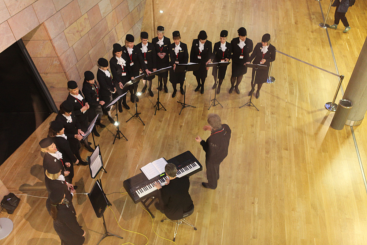지나가다 보니 합창소리가 들려 내려다보니 아이슬랜드 항공사 여승무원들이 합창연습을 하고 있다. 연말에 무슨 이벤트를 준비하고 있는 모양이다.