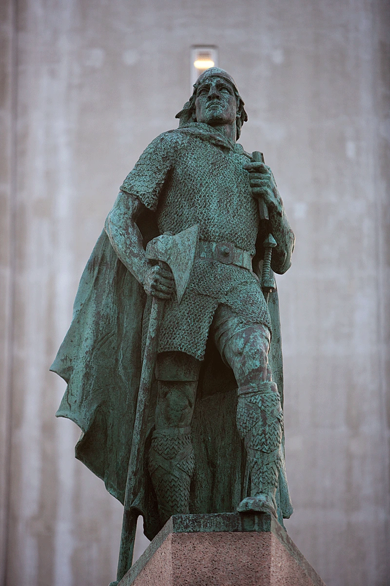 LEIF EIRICSSON은 AD 985년경 약 30여명의 무리를 이끌고 아이슬랜드를 떠나 그린랜드 서남부를 탐험하고 그곳에 정착한 무리의 우두머리로 노르웨이 바이킹의 후손이다. 실제로 이 시기는 유럽에서는 신성로마제국을 시작한 카롤루스 대제가 죽자 프랑코왕국이 동서로 분열되었던 시기로 스칸디나비아 반도의 바이킹족들이 유럽을 침공한 시기와 일치한다. 주로 노르웨이와 덴마크의 바이킹들이 서프랑크를 침입하여 일부는 지금의 프랑스 노르망디 지역에 눌러 앉았고 스웨덴 바이킹은 동쪽 지역의 슬라브족을 공격하여 그곳에 키예프공국을 세웠는데 이게 훗날의 러시아의 모태가 된다. 여기서 왜 바이킹족의 유럽 침입이 주요한 이슈가 되는냐 하면 VINLAND 때문인데 LAND OF VINE으로 ‘포도나무가 자라는 따뜻한 땅’을 의미하는데 여기가 어딘지에 관하여 이에 대한 역사학자들의 의견이 분분하다. 바이킹족들이 남하하여 이런 따뜻한 땅을 찾아 지금의 프랑스와 지중해를 따라 이태리 남부 시실리와 말타까지 침범한 역사적 사실이 있기 때문에 위 동상 뒷면에 적혀있는 VINLAND 의 발견자란 표현이 맞지 않는다. 왜냐하면 에릭선이 정착한 그린랜드 남서부지역이 몹시도 추운지방인데 포도나무가 자랄수 없는 지역이기 때문에 여기서 말하는 VINLAND는 그냥 “미지의 개척지” 정도로 이해해야 할 것 같다. 덧붙여 말하면 콜롬부스가 서인도제도를 발견한 해 1492년 보다 500여년 앞서서 노르웨이 바이킹족들이 지금의 캐나다 뉴펀들랜드에서 거주한 흔적이 발견되었는데 이것도VINLAND는 아니라고 한다.
