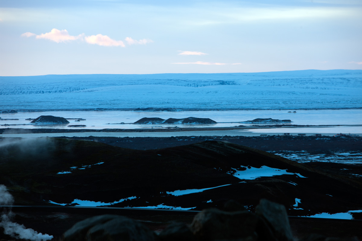 저 커다란 빙하지역은 해가 져서 보지도 못하고 계속 운전만 하고 가는데 마주 오는 차도 뒤따라 오는 차도 없다. 한시간에 차 한대 정도가 서로 마추쳐 지나가고 차가운 겨울 바람은 승냥이 울음 소리처럼 웅웅거리고