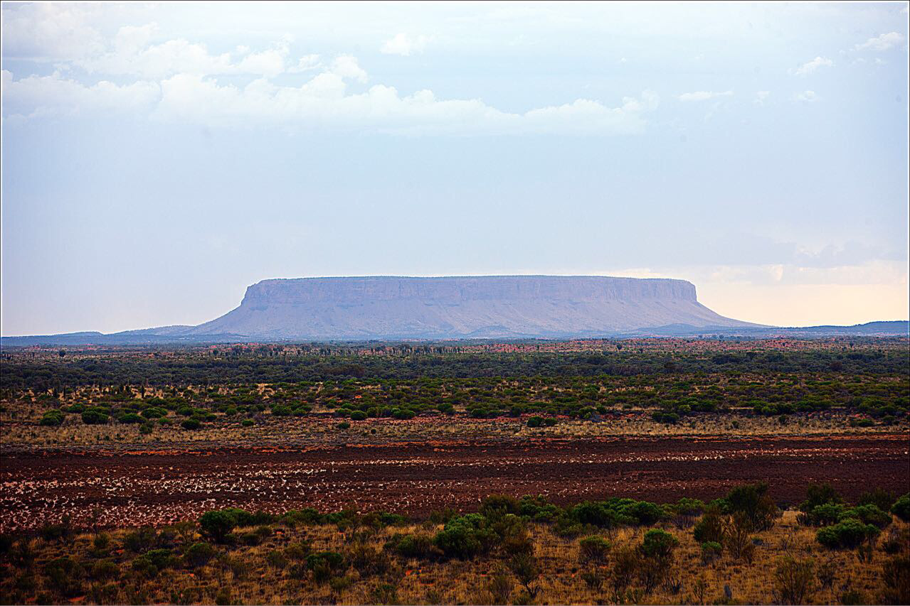 전망대에서 남쪽으로 바라보니 CONNER산이 저 앞에 단정하게 앉아있다. 앞에서도 언급했듯이 탁자형 산으로 남아프리카 공화국의 케이프타운에 있는 테이블 산도 저런 형이다. 그 산이름도 MOUNT TABLE이다. 코너산은 높이도 울룰루보다 높고 면적도 근 3배나 된단다. 그런데 코너산에 대한 안내문은 여행 안내서도 없다. 저 정도 규모의 산이라면 당연히 원주민들에게는 성스러운 곳으로 여겨져 왔을테인데……그러나, 울룰루같이 이곳이 원주민들의 터전이었다는 문구는 없다.