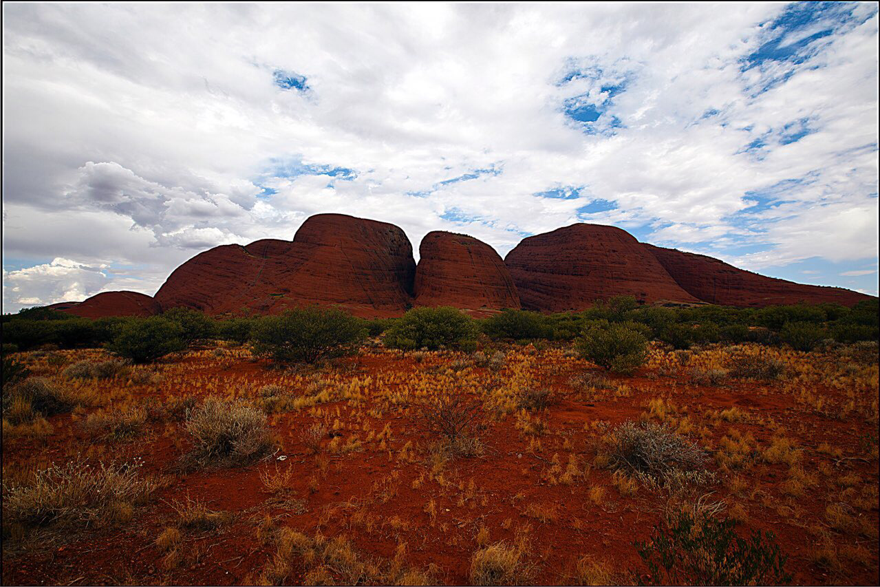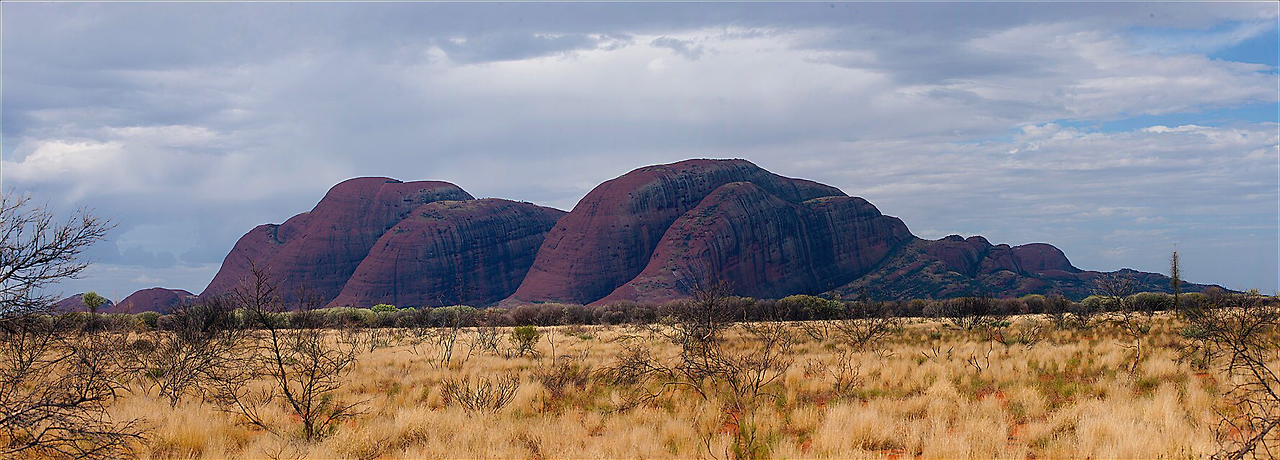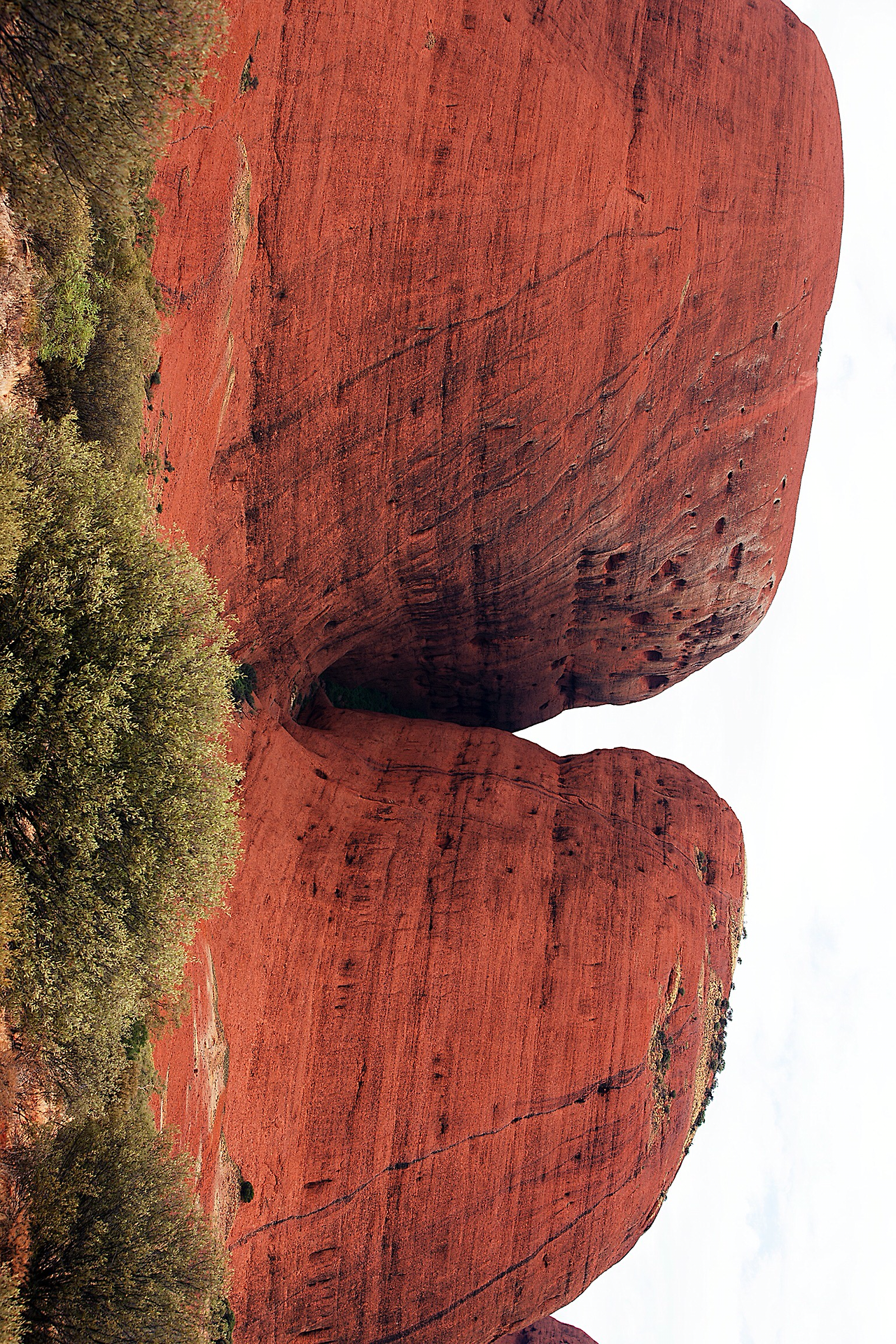 KATA TJUTA 모듬바위를 WIDE ANGLE로 잡아보니 너무 왜곡되게 나와서 정상각도로 찍은 사진 3장을 합성하여 포샵했다. WIDE보다는 훨씬 자연스럽게 보인다. 광각렌즈로 퍼져있는 경치 사진을 찍으면 화각이 넓어 원샷에 다 들어오지만 너무 왜곡되게 보여 좌우 경치나 물체가 중앙에 비해 너무 작게 보이는 단점이 있다. 그래서 위 사진처럼 정상 각도로 찍은 사진을 합성하여 이어보면 그런 좌우 왜곡현상은 없어지지만 대신 해상도가 떨어지는 단점이 있다.
