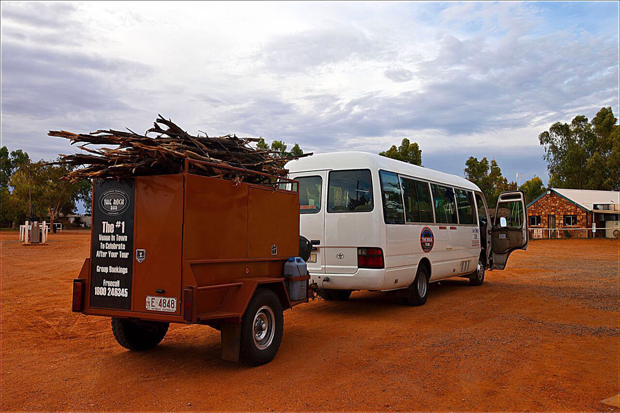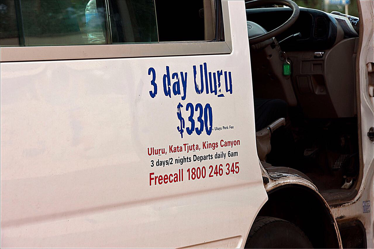 봉고 승합차가 트레일러를 끌고 어제밤 우리가 야영했던 CURTIN SPRING으로 오늘 아침에 들어왔다. 열댓명 관광객을 태우고 우리와 같이 울룰루로 가고 있는 것 같다. 아마 세계테마기행에서 이런 관광상품을 본 적이 있다. 다윈에서 출발해서 울룰루, 카타추타, 그리고 킹즈캐넌을 2박3일로 마치는 상품이다. 특이하게 기억나는게 트레일러 위에 실려있는 캠프파이어용으로 주워 모은 나뭇가지들이다. 가면서 중간 중간 REST AREA에서 모두들 흩어져서 마른 나뭇가지를 줍는 장면들이 퍽 인상적이었다. 가격이 330불이란다.