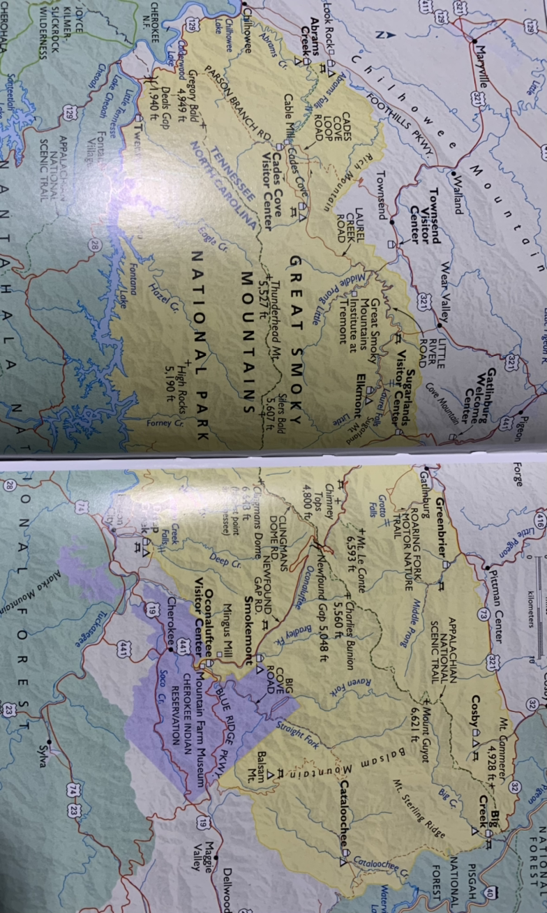 NC의 체로키마을에서 시작하여 Oconaluftee VC를 지나 꼬불꼬불한 산길을 up & down 하면서 33마일을 달리면 Sugarlands VC가 있는 테네시주 Gatlinburg로 이어지는 이 산길을 Newfound Gap Road라고 한다. 시간 없이 이 공원을 찾는 대부분의 방문객들이 제일 선호하는 드라이브 코스다. 이 안에 전망대, 역사 유적지, 짧은 트레일들이 있어 각자의 취향에 맞게 반나절을 즐길 수 있다.