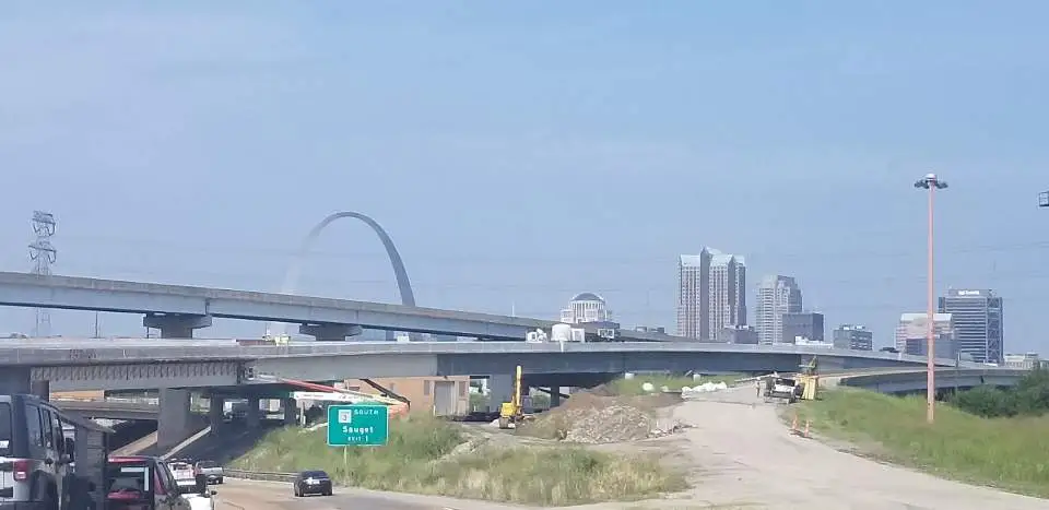 켄터키 매머드 동굴 국공에서 점심을 하고 미주리 주로 쉬지 않고 줄곧 올라왔는데도 거의 늦은 저녁이 되어서야 세인트루이스로 들어왔다. 도심지 국립공원이 오후 5시가 넘으면 Close 할 것 같아 길을 찾다가 잘못하여 미시시피 강을 건너는 다리로 진입하고 말았다. 다리 중간에서 유턴할만한 장소가 없어 결국 긴 그 다리를 끝까지 건너고 말았다. 다시 이쪽으로 다리를 건너오면서 생각해 보니 내일 아침이 되어서야 공원 Visitor Center를 가볼 수 있을 텐데 그러면 오늘 저녁을 근방 어디에서 잠을 자야 하는데 도심지 국공에 캠핑장이 어디 있을 리 만무하고 고속도로 휴게소 찾기도 힘들 것 같아 그냥 이대로 콜로라도 덴버로 질주하는 게 나을 것 같아 회색빛을 멀리하고 녹색을 찾아 대도시를 미련도 없이 훌훌 떠나버렸다. - JH -