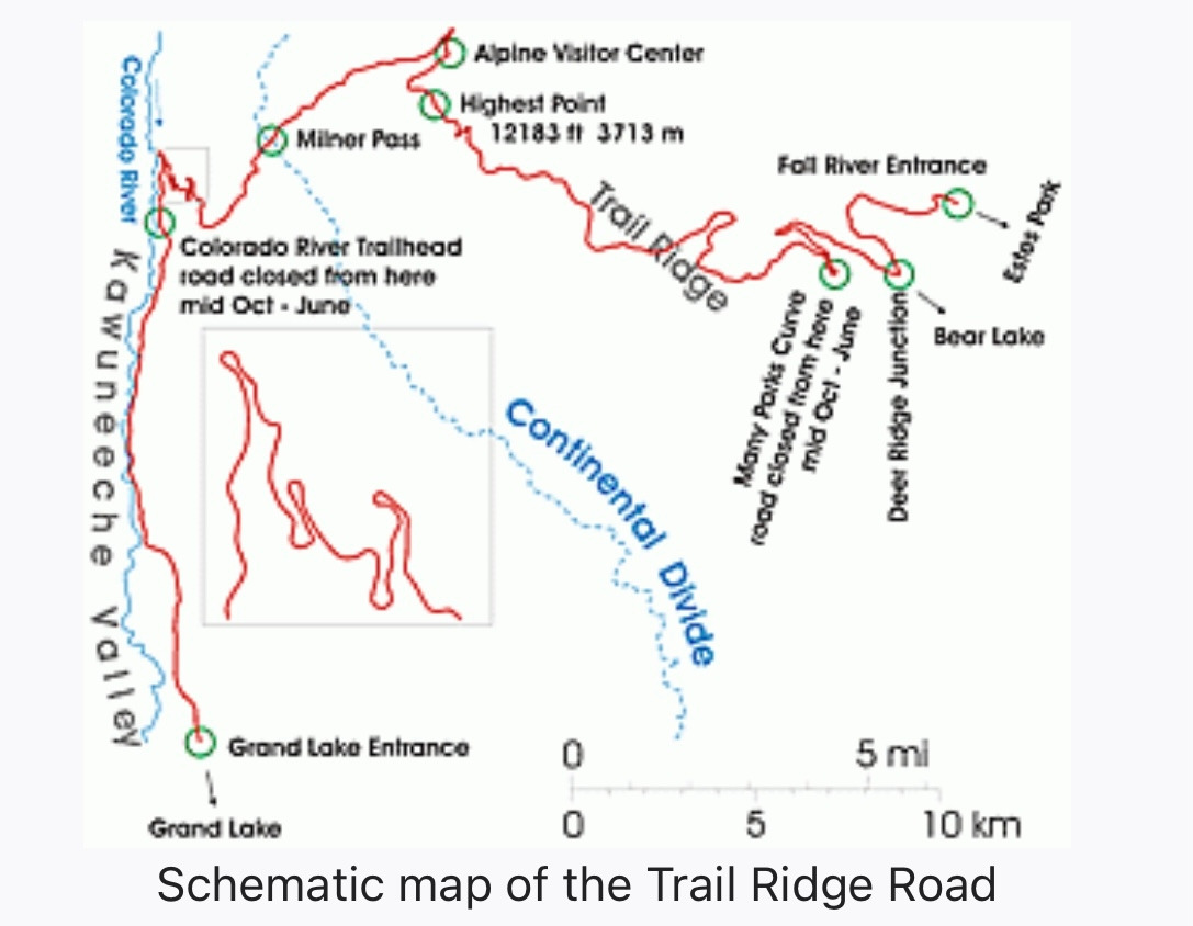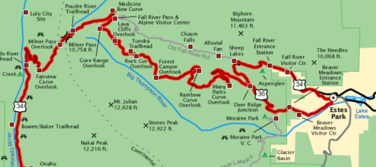 Trail Ridge Road(하늘로 올라가는 길) 전체 지도