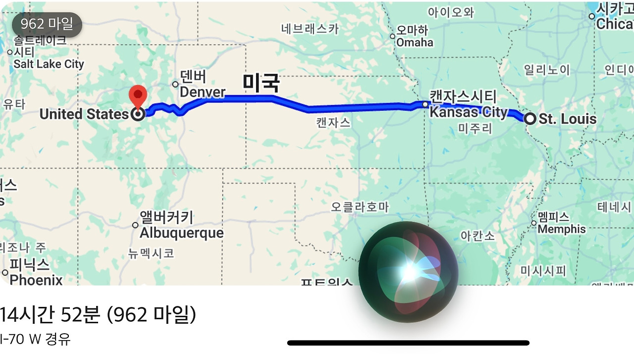 세인트루이스에서 록키마운틴 국공까지 거리를 찍어보니