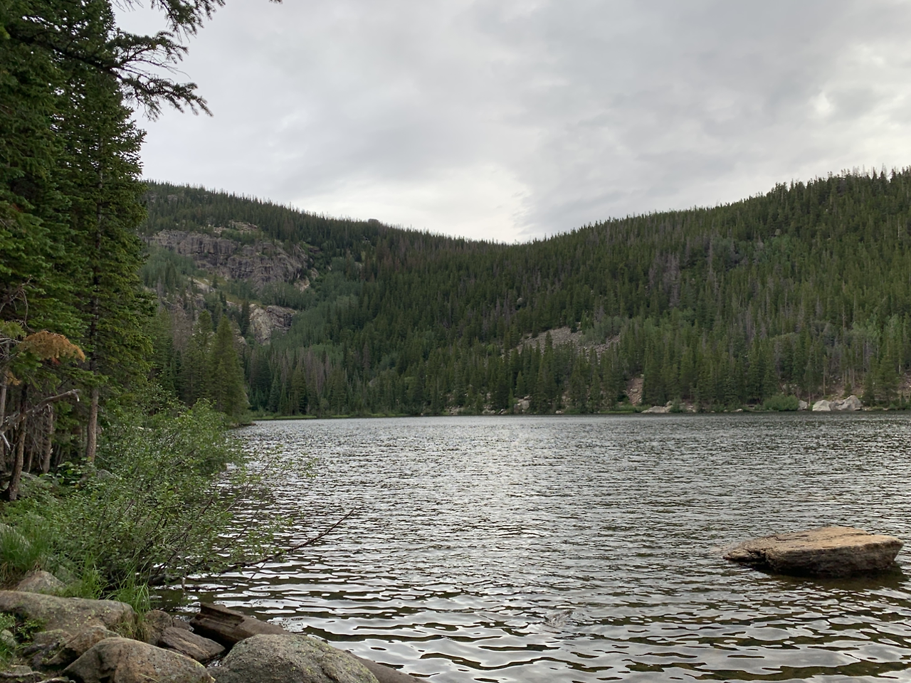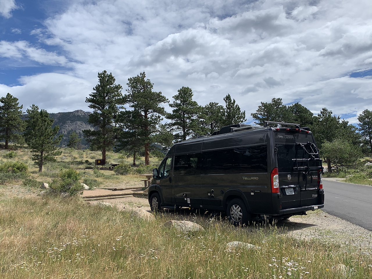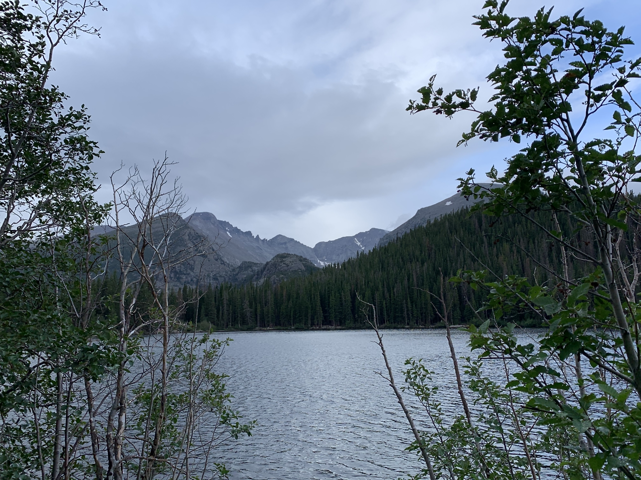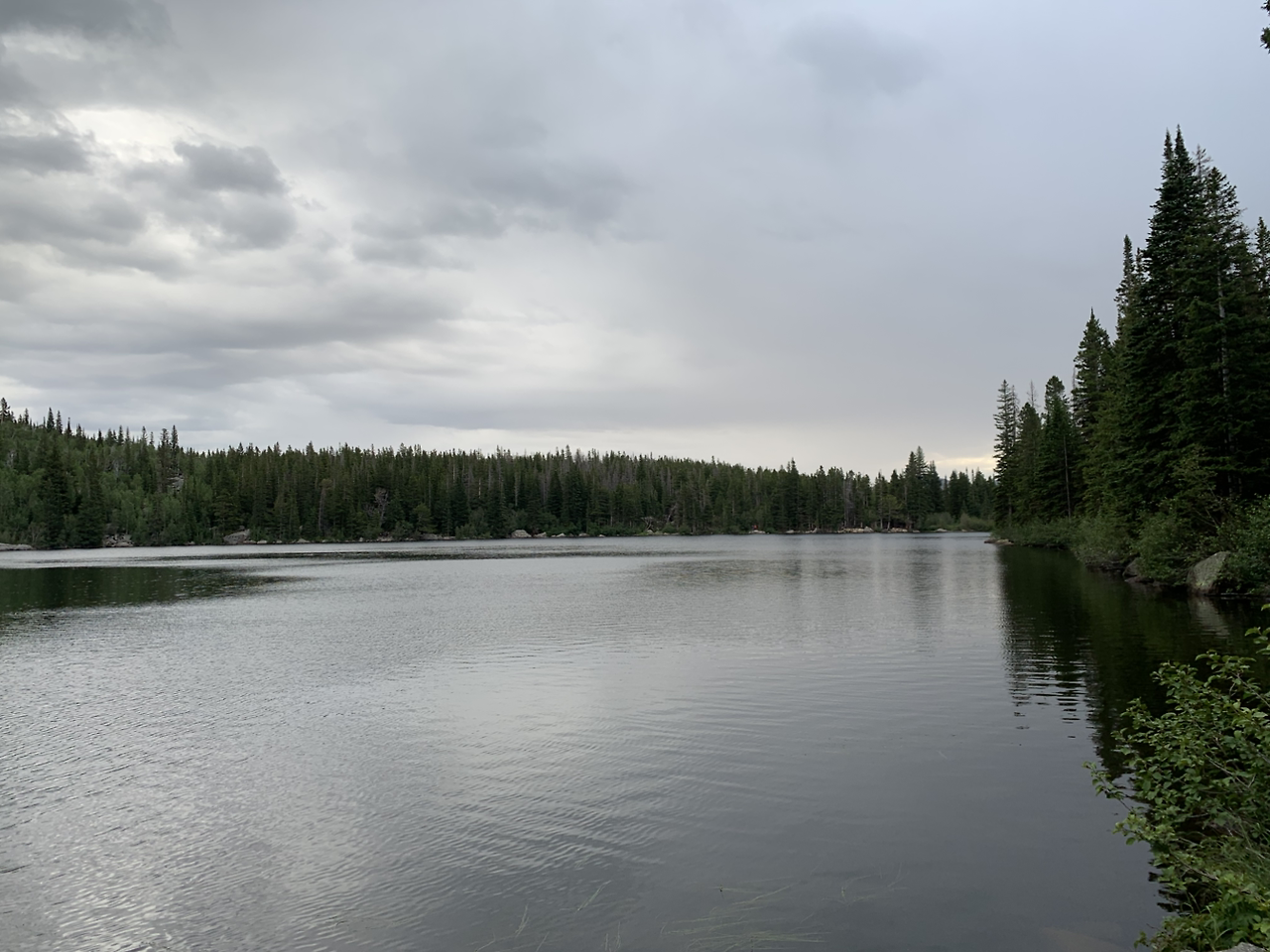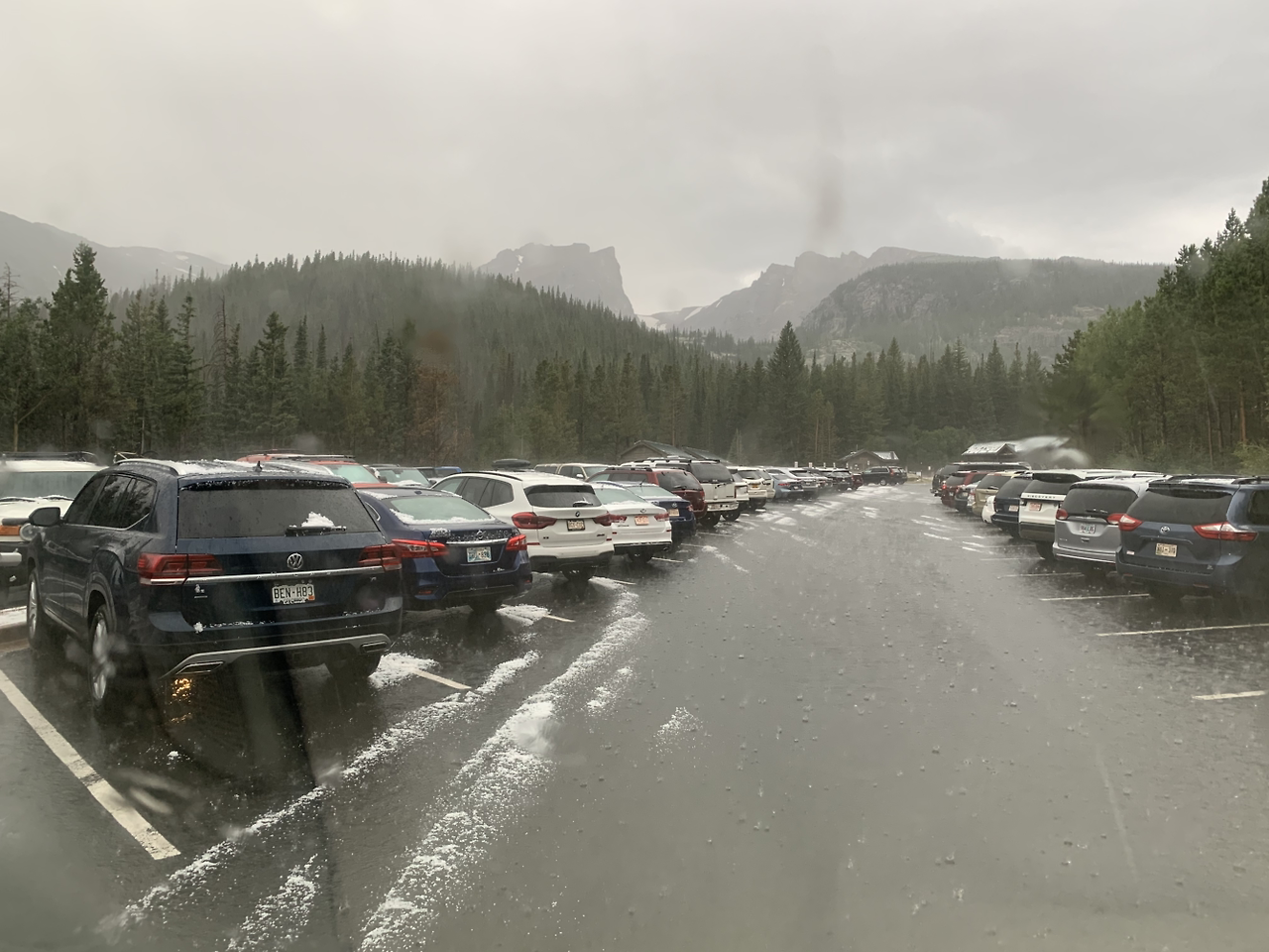 Bear Lake 트레일 파킹장. 록키 산 국공에서 첫날은 새벽에 도착해서 Estes Park Visitor Center에서 잤고 둘째 날은 여기 Bear Lake 주차장에서 잤다. 그날 해 질 무렵 우박이 한바탕 쏟아져 기온이 겨울날씨처럼 을씨년스러웠다. 위 사진에 희게 남아있는 것들이 녹지 않은 우박덩어리다.