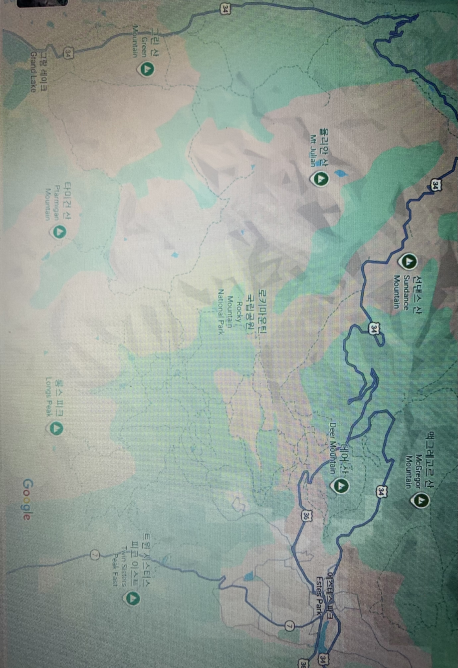 공원에서 얻은 지도에도 표시가 안되어 있어 구글지도를 불러와 위치를 찾았다. Trail Ridge Road와는 동떨어지게 남쪽으로 치우쳐 있어 접근하기가 굉장히 힘들다.(계속)