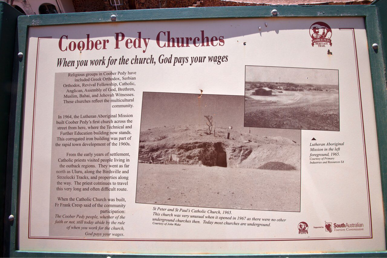 금광처럼 OPAL광도 한번 발견하기만 하면 팔자 고치는 사업이기 때문에 많은 사람들이 사막을 여기 저기 파고 있다. 하나 특이한 사실은 오팔 채광사업을 한 개인이나 독점 회사에 주지 않고 개인별로 한번의 채광 허가를 주는데 폭은 50m 깊이는 100m로 제한하고 있다고 한다. 오기 전에 미국서 세계 테마 기행에서 쿠버 페디에 관한 동영상을 보았는데 여기 주거 환경이 열악하기 때문에 근처 대도시에 가족을 두고 혼자 여기에 와서 오팔 채광을 하는 사람을 취재하는걸 보았는데 일확천금을 평생에 걸쳐 노리는 사람이 많다고 한다. 일확천금을 찾기 위해 파헤쳐진 오팔 채광굴에 잘못하다가 빠지는 수가 있으니 조심하라는 경고판이 이 곳 저 곳에 붙어 있다. COOBER PEDY의 마을이름이 원주민어인