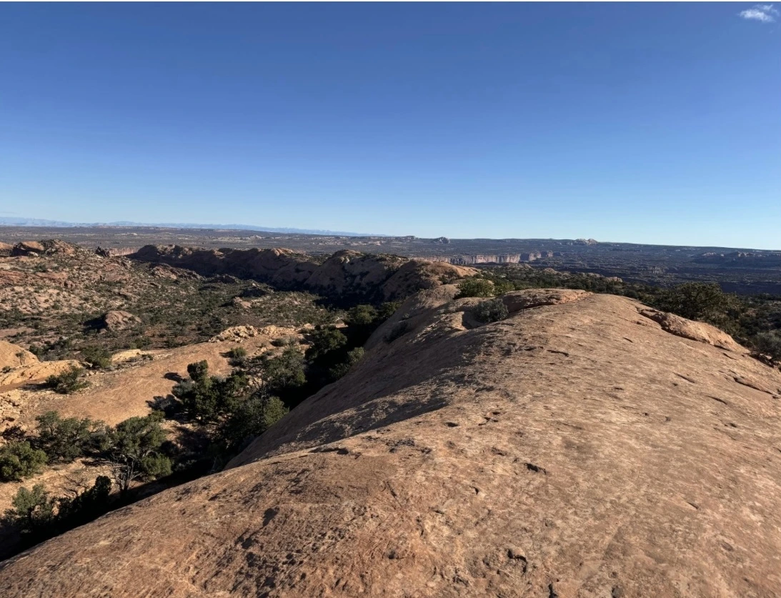 Upheaval Dome의 제1 전망대에서 내려오면 바로 왼편에 고래등 같은 길쭉한 바위가 엎드려 있는 것 같다. 그 위로 길이 있어 걸어보니 마치 고래등위를 걷는 것 같았다.
