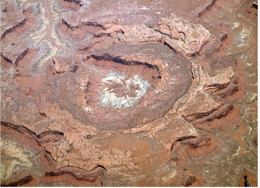 Visitor Center에서 얻은 위 사진이 Upheaval Dome 전체를 볼 수 있는 유일한 사진이다. 좋은 각도로 평지에서 사진을 찍어도 이런 이미지를 얻을 수 없다.
