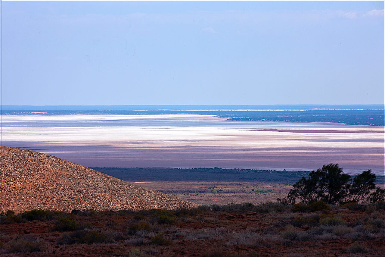 2.호주 최대의 소금호수가 있는 LAKE EYRE 국립공원으로 제일 낮은 곳이 SEA LEVEL보다 15미터 낮다. 소금량이 약 4억톤이나 된다고 한다. 볼리비아의 소금사막도 여기에 미치지는 못할 것 같다. 짠 소금밭으로 일반 푸른 식물은 살 수 없고 BLUEBUSH나 SALTBUSH만 살 수 있다. 그러나 때론 우기에 비가 와서 호수가 범람할 때는 예쁜 꽃들도 피고 펠리컨이나 갈매기들도 찾아 오는 평화로운 대지로 변한다고 한다.