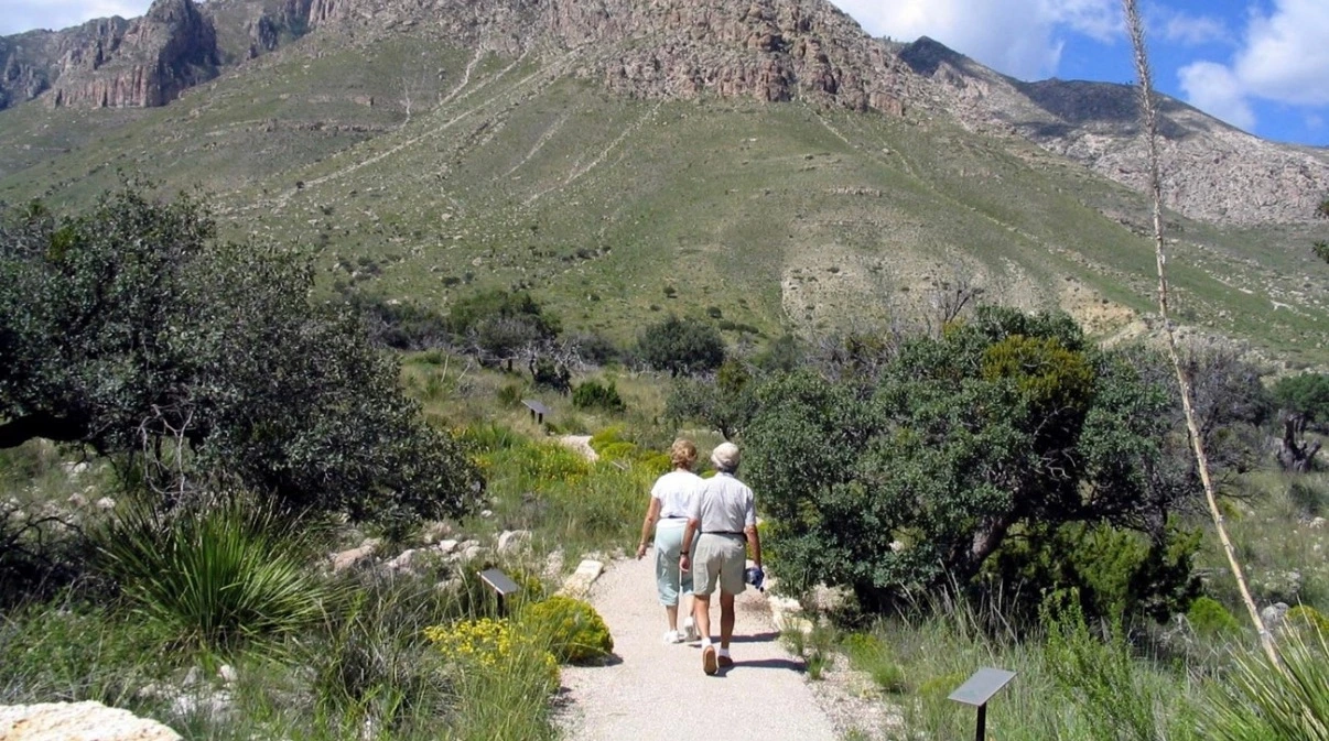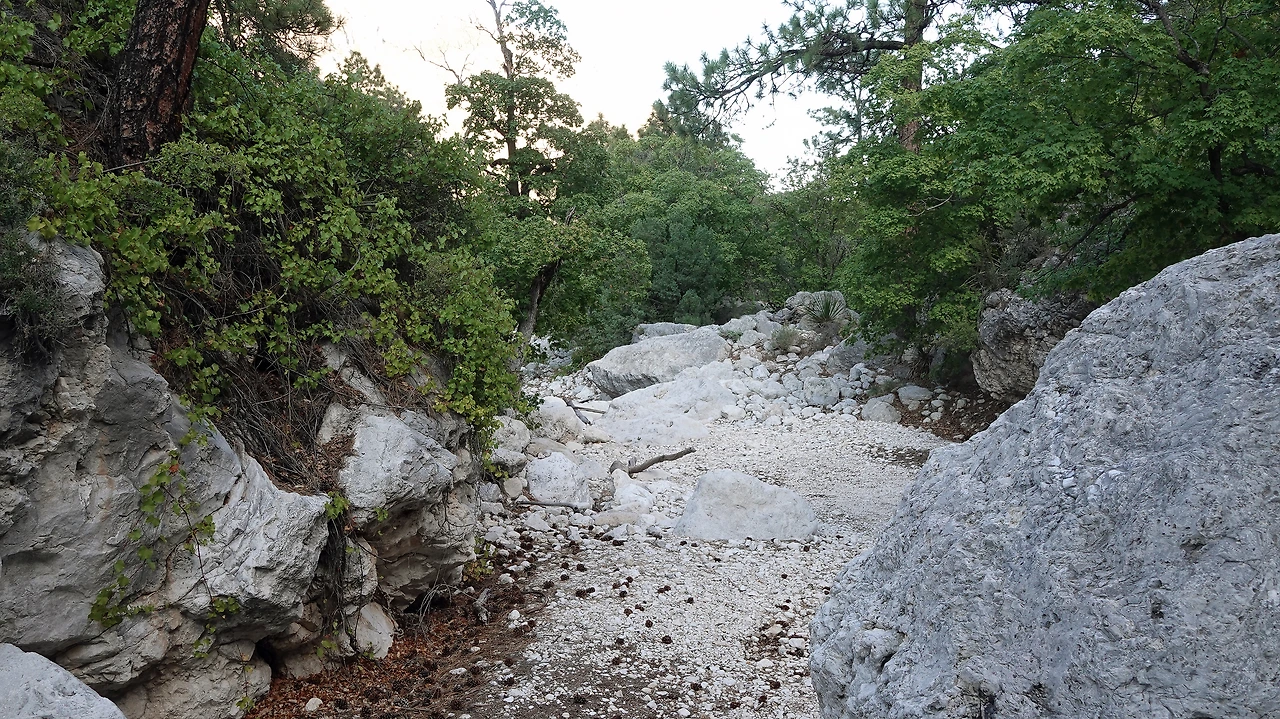 Visitor Center가 있는 Pine Springs를 기점으로 여러 트레일들이 얽혀있다. 공원으로 들어오는 도로에서 보이던 떡 버티고 서 있던 바위가 장군바위(El Captain)로 2464m 높이를 자랑하고, 텍사스 주 최고봉은 그 뒤에 가려 보이지 않은 Guadalupe Peak로 2667m 높이를 뽐내며 공원의 대표 트레일인 Guadalupe Peak Trail이 정상까지 연결되어 있다.