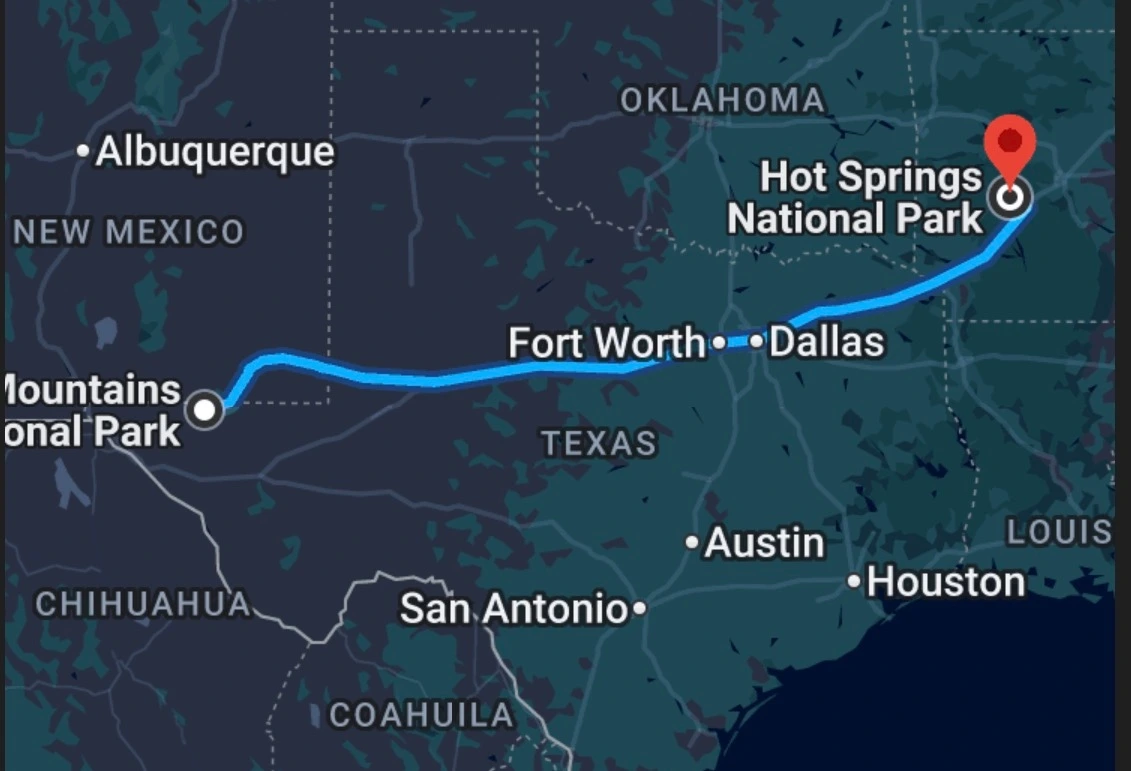 그렇게도 지리한 Texas 주를 관통하여 Hot Springs