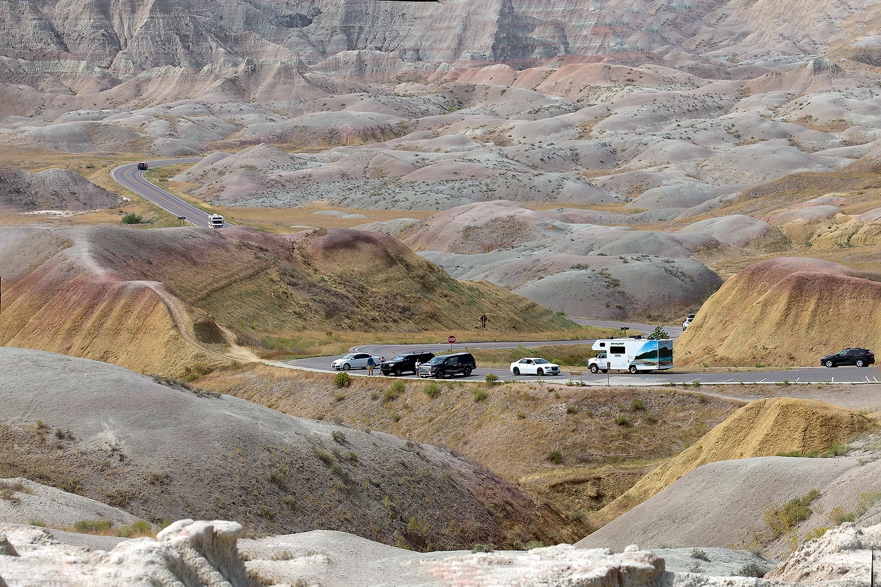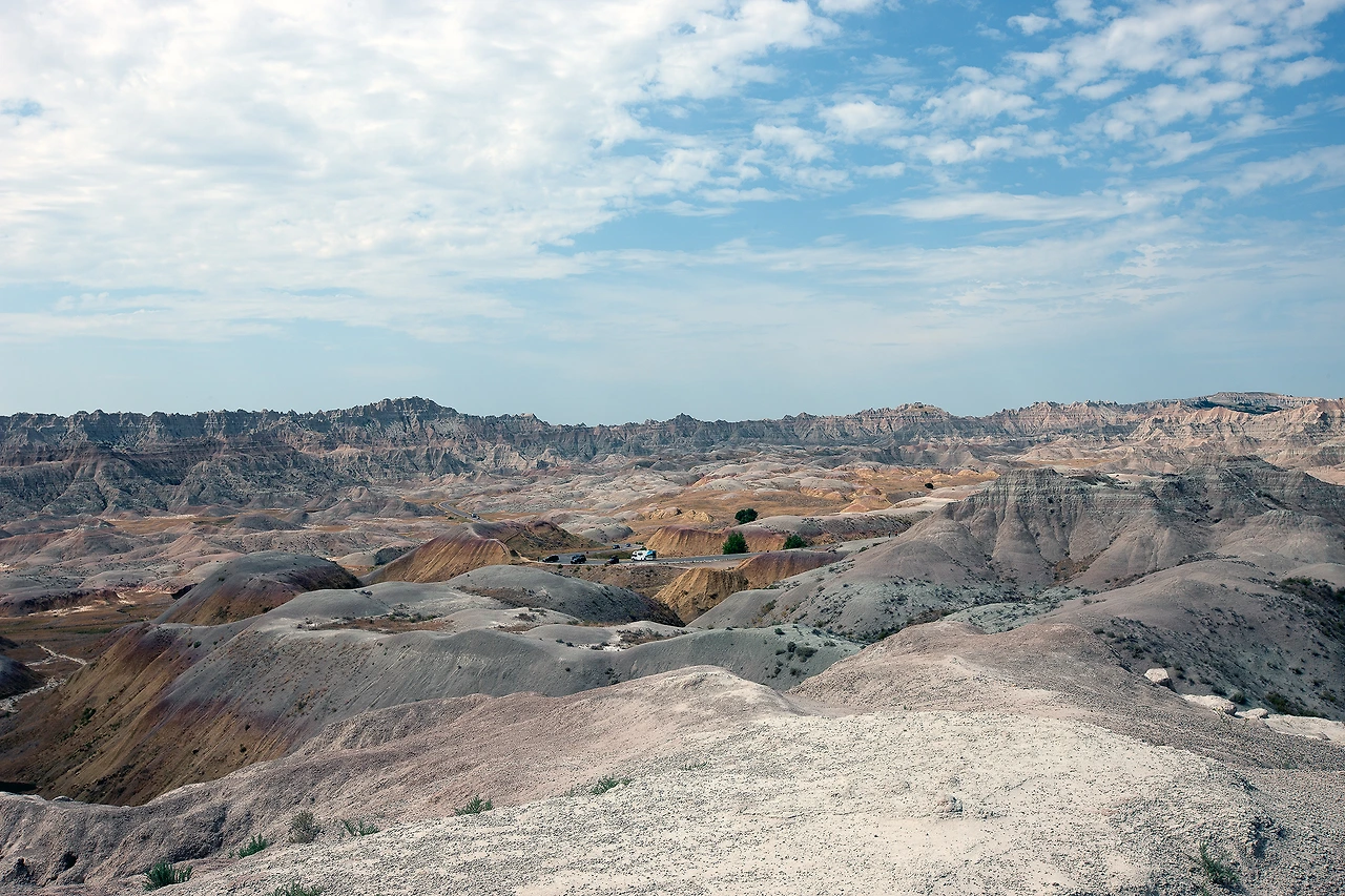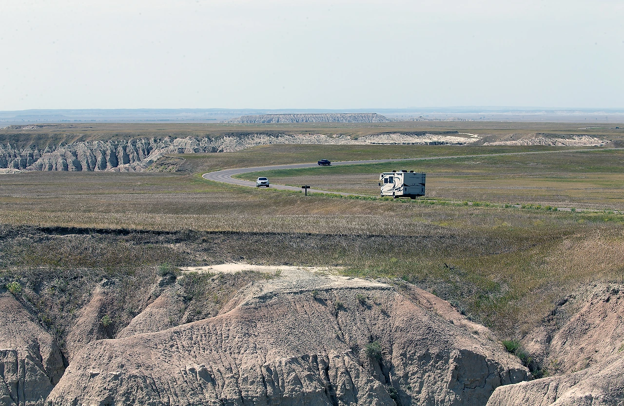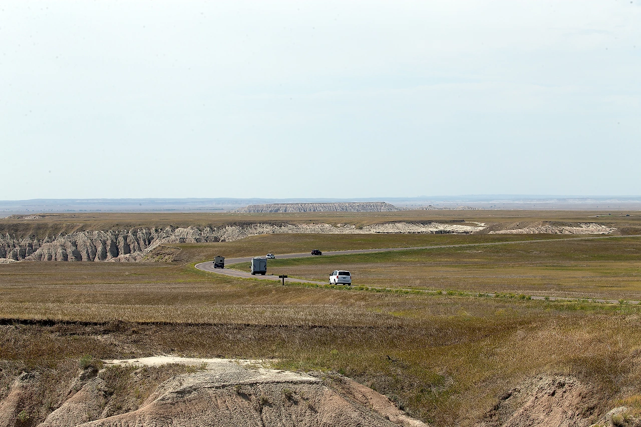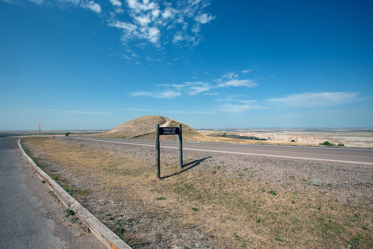 아스팔트 길이 끊어지고 비포장도로가 나타났다. 지도를 보니 Pinnacles 전망대를 바로 지나자 여기서 길이 갈린다. 비포장도로 이름이 Sage Creek Rim Road로 공원 안쪽으로 계속 이어지는 도로다. 정보가 없어 어떤 풍광을 보여 줄는지 자못 궁금했지만 내 RV로는 가기 힘들것 같다. 부득불 Badlands NP 탐방은 여기까지로 막을
