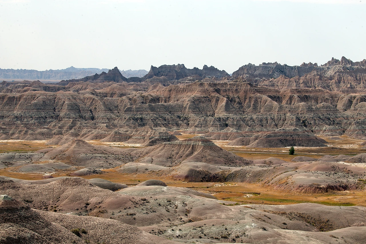 배드랜드는 영어로 "나쁜 땅" 또는 "황무지"를 뜻하는데이는 아메리카 원주민 수족의 언어인 마코시카(Makȟóšiča)를 영어로 옮긴 것이다. 500,000년 동안에 걸친 물과 바람의 침식 작용으로 인해 형성된 기묘한 지형에는 여러 개의 절벽과 협곡, 우뚝 솟은 봉우리, 밑 부분이 가늘게 깎인 바위, 평탄한 바위의 테이블 등 특이한 풍경이 펼쳐져 있다. 1939년 1월 29일 미국 국립기념물로 지정되었으며 1978년 11월 10일에는 국립공원으로 승격되었다.