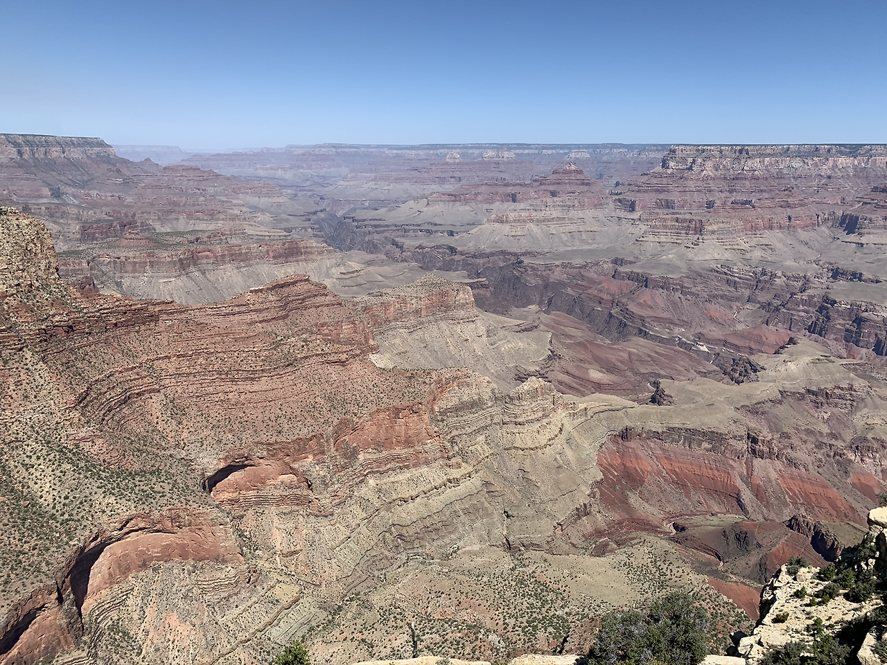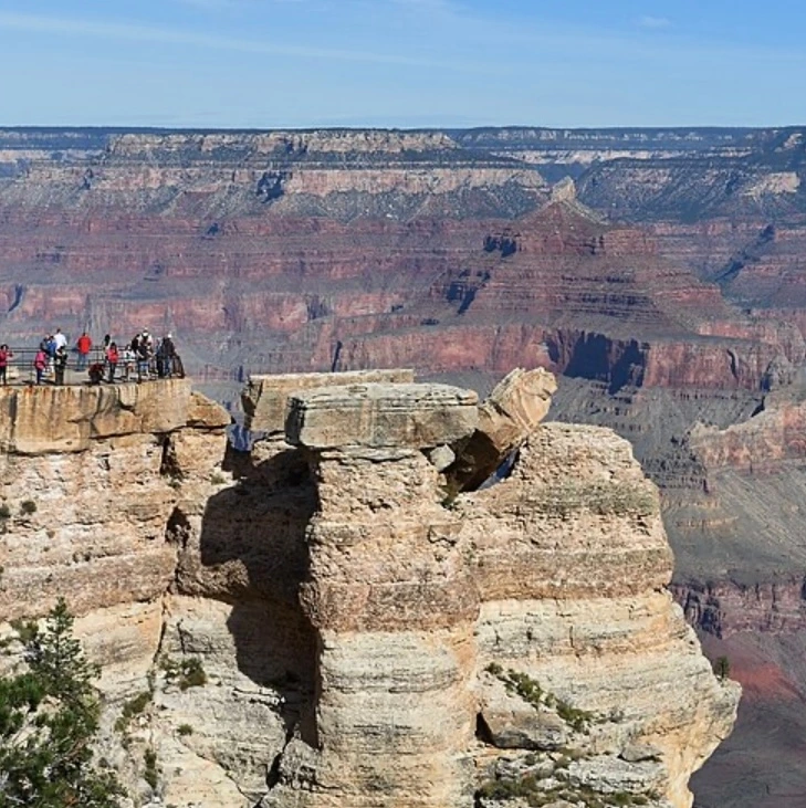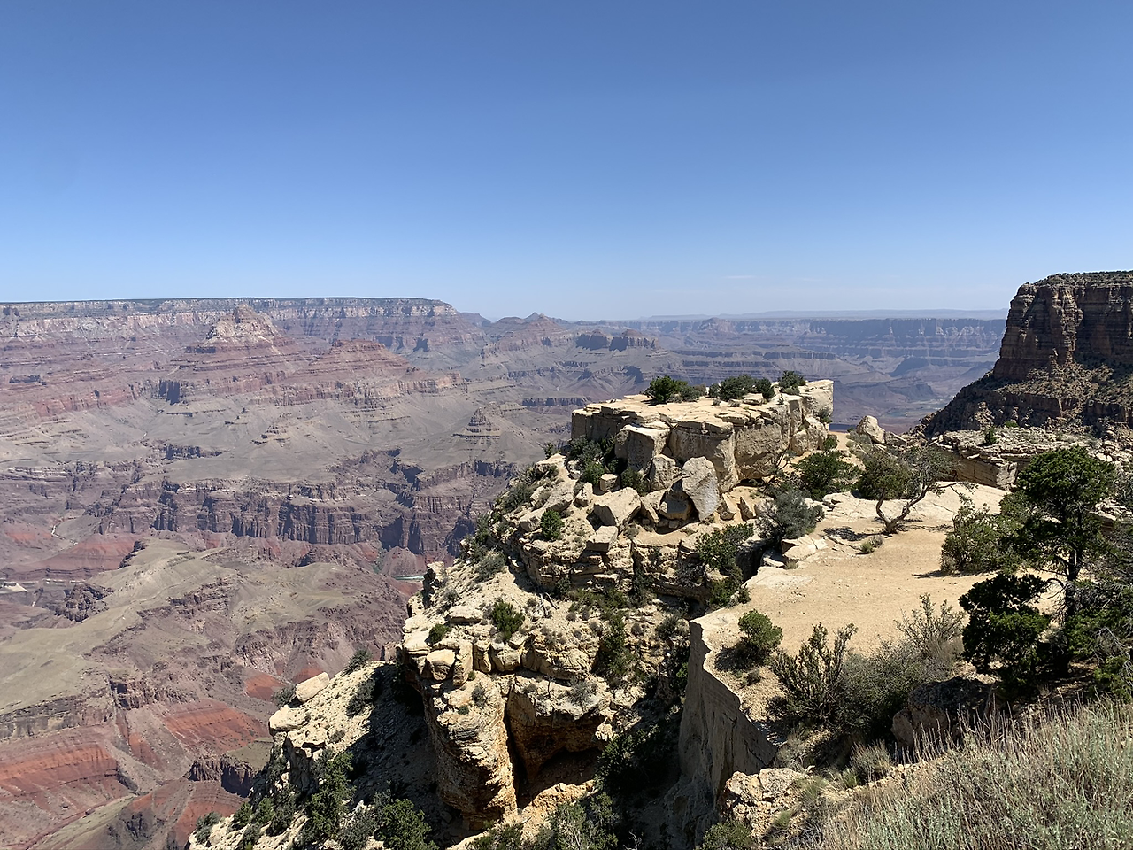 South Rim에서 방문객들이 제일 많이 다녀가는 전망대이다. 그랜드 캐년에 들어와서 Visitor Center 파킹장에 차를 세워놓고 내리면 여기가 제일 가까운 전망대이기 때문이다. 날이 맑을 때에는 동서로 각각 30에서 60마일까지 시야가 확보된다고 한다. 서쪽이 더 멀리 보이는 모양이다.