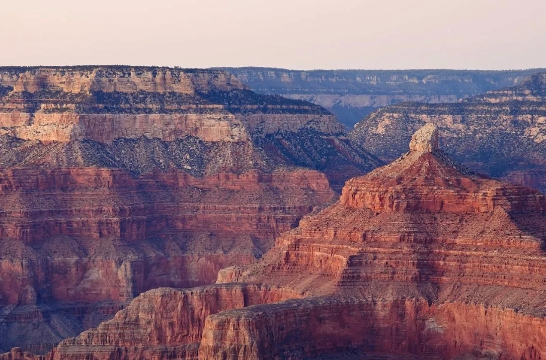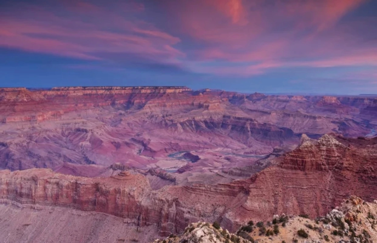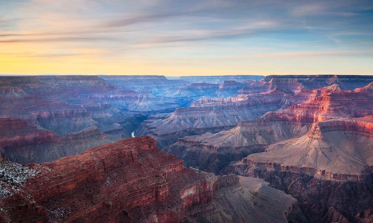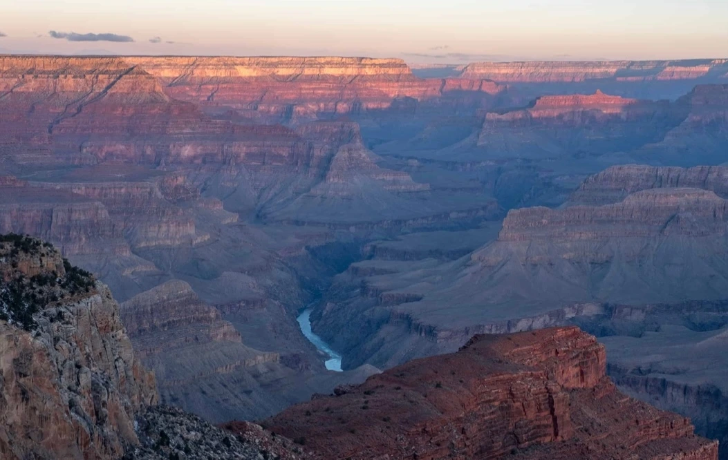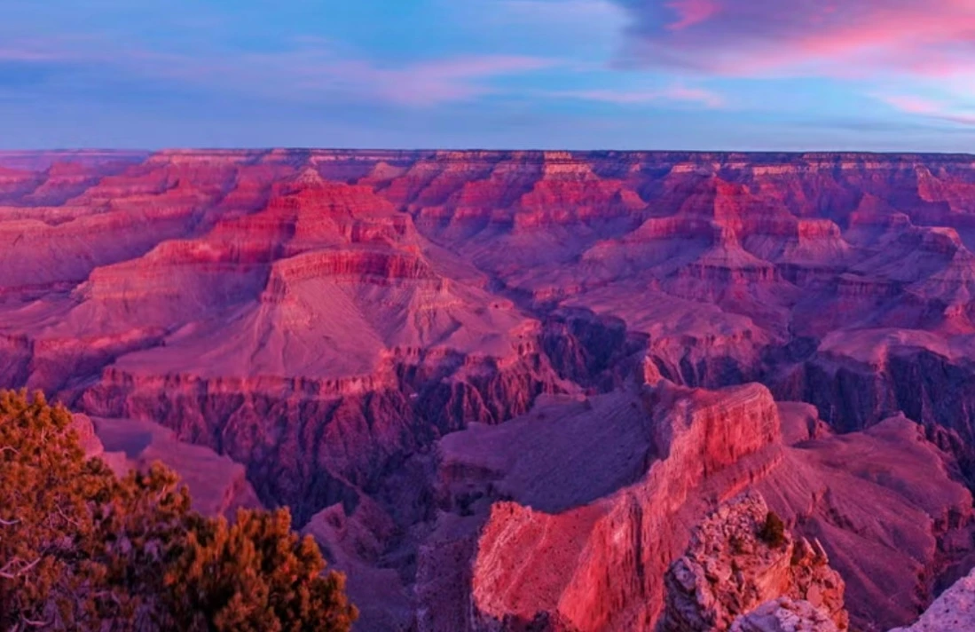 Hopi 전망대에서 바라본 일출로 붉게 물든 그랜드 캐년.