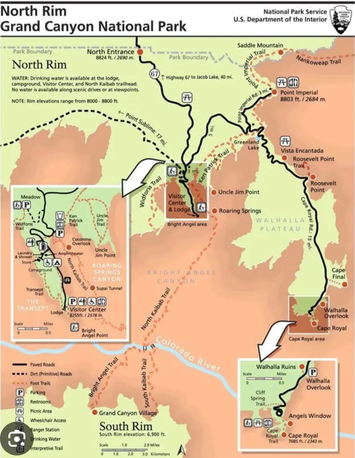 이번 편에서는 주로 South Rim에 흩어져 있는 Point를 하나씩 둘러보았는데 다음 편에서는 North Rim에 있는 Point를 하나씩 정리해 보기로 한다. North Rim에서 이틀밤을 잤지만 Cape Royal에서 죽치고 있었기 때문에 Visitor Center 근처의 다른 포인트는 가보지도 못했고 주로