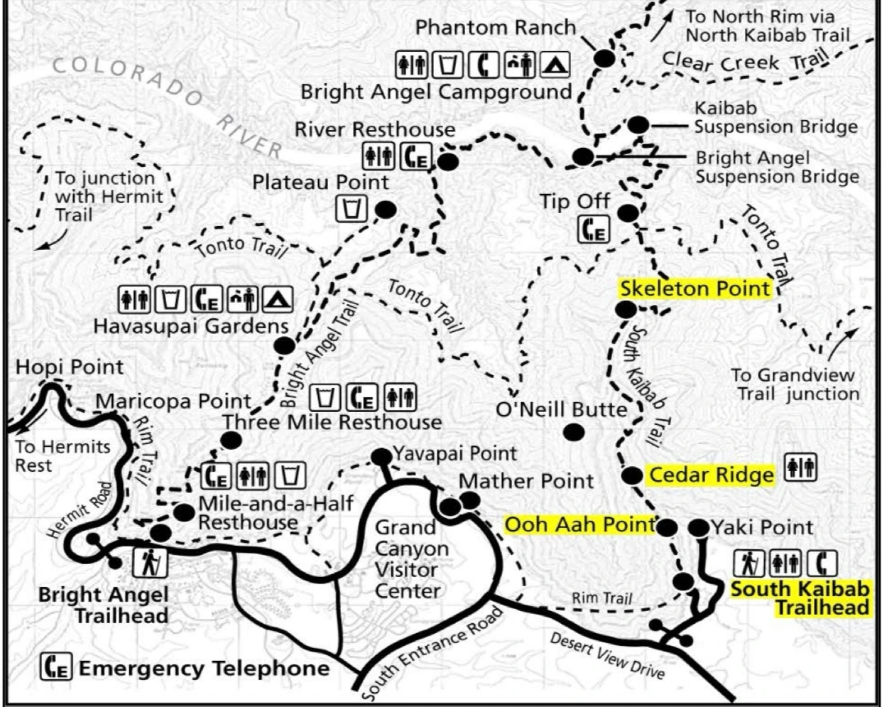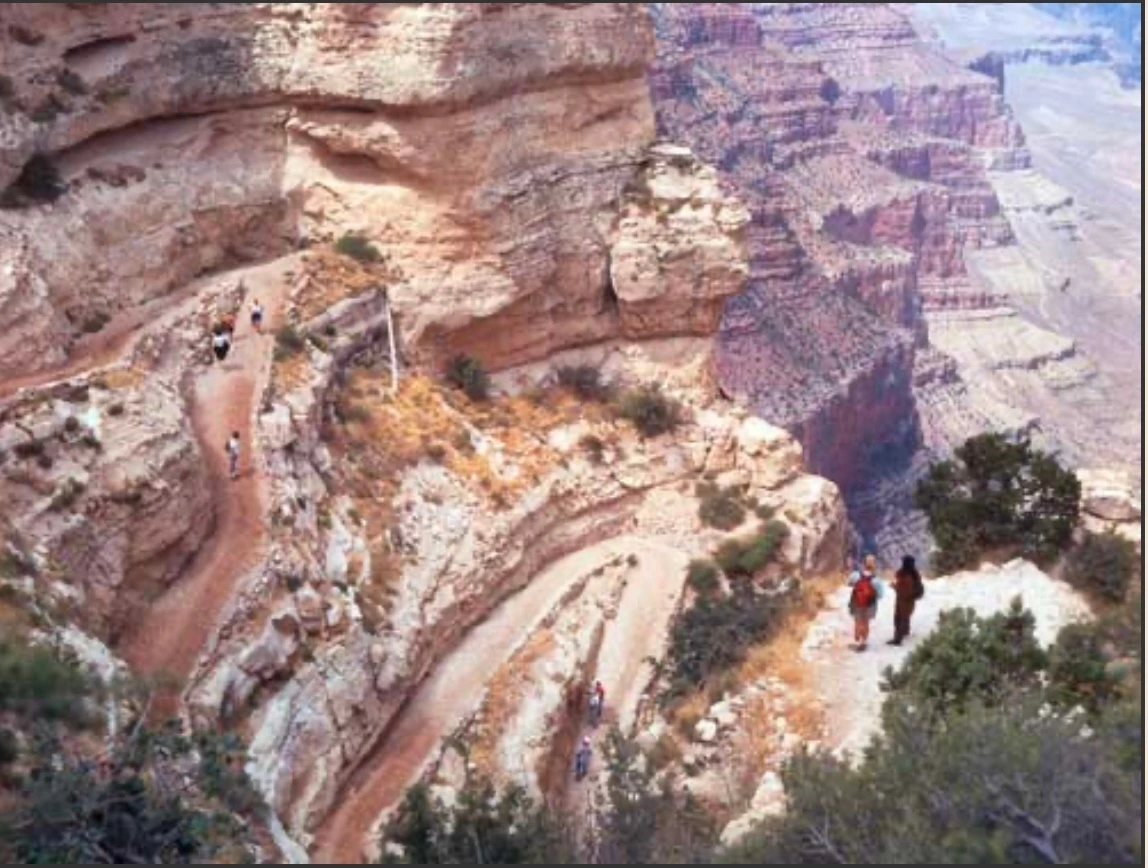 South Kaibab Trail이 매우 가파르다. 길이 지그재그로 나 있다. Kaibab이란 여기에 거주했던 파이우테(Paiute)