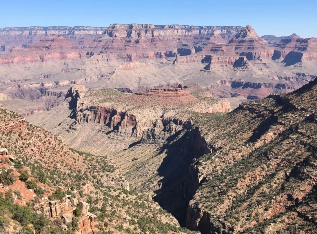 Grandview Trail이 시작되는 곳이다. 1800년대 초에 조성된 이 트레일은 원래 여기서 캐낸 구리 원광석을 운반하기 위해 만들었다. 그랜드 캐년에서 must-do 꼭 가봐야 하는 트레일로 소개되어 있지만 트레일 소개에 들어가서 읽어보면 그렇게 호락호락한 트레일은 아니다. 트레일 중간쯤에 Horseshoe Mesa라는 말굽같이 생긴 평평한 고원이 있어 사진을 발췌하여 올린다.