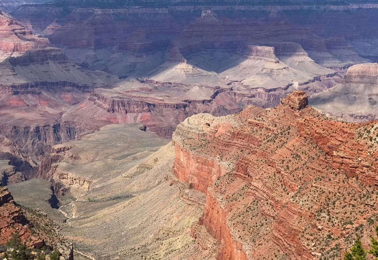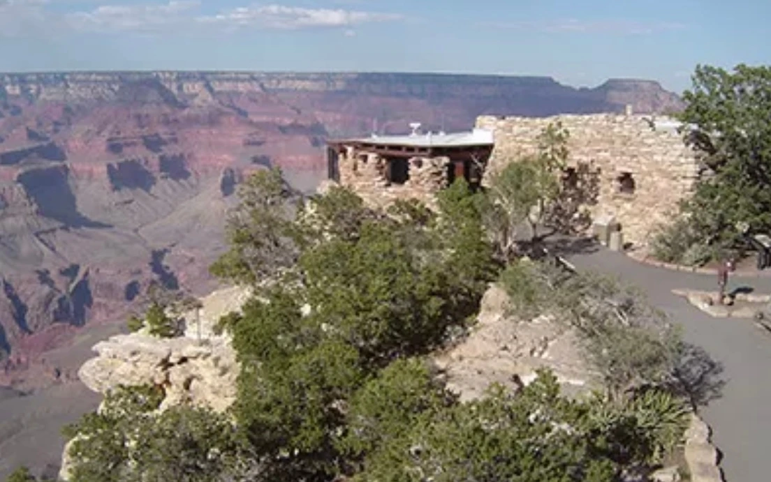 여기 포인트에서는 the Bright Angel과 Tonto Trails 그리고 콜로라도 강의 안쪽 협곡을 바라보며 180도 넘게 파노라마 뷰를 볼 수 있다. 그리고 방문객들은 역사적인