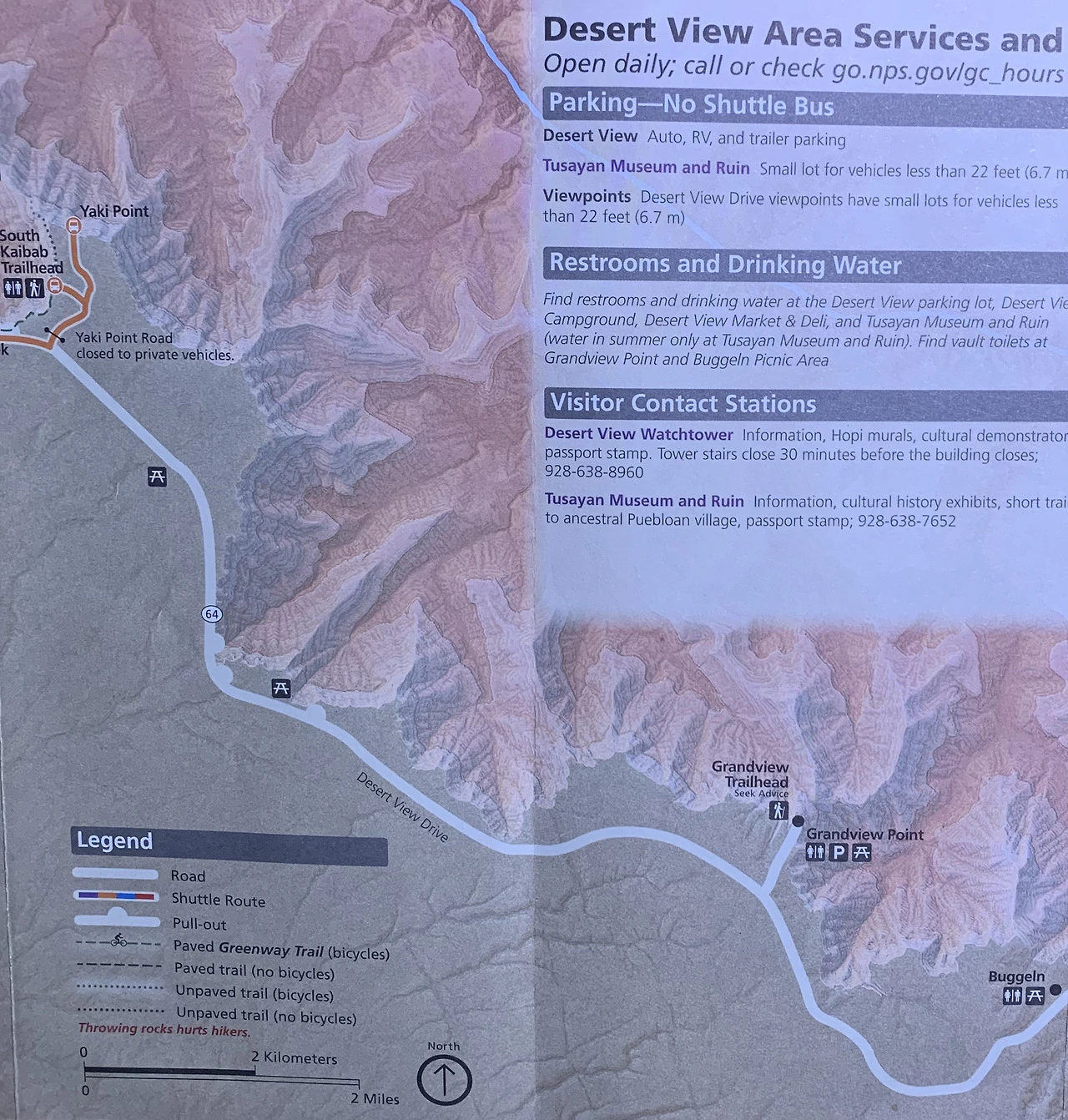 여기에는 파킹장이 없기 때문에 걸어서는 올 수 있는데 차를 가지고는 못 온다. Visitor Center 파킹장에 차를 세워놓고 셔틀버스를 타고 와야 한다. South Kaibab Trail은