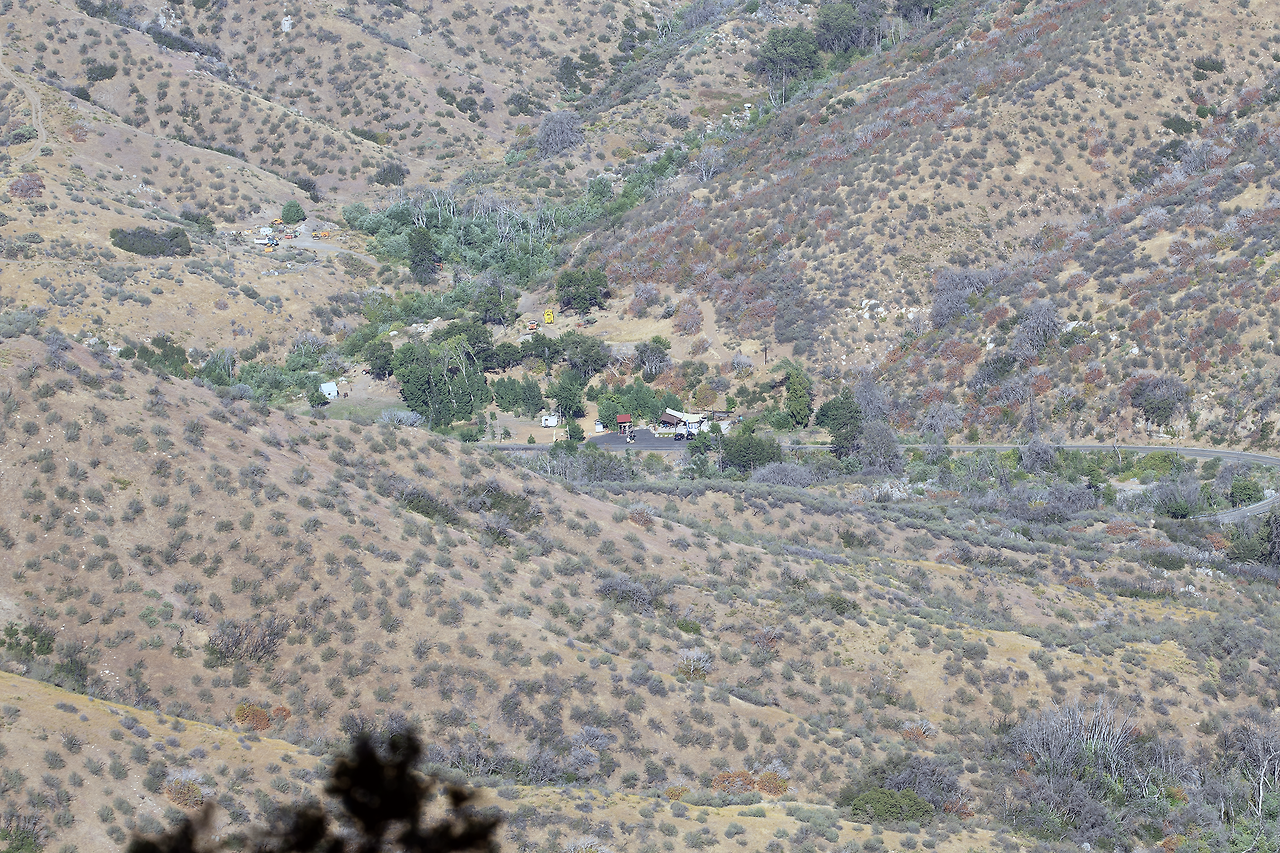 Cedar Grove로 들어가면서 찍은 사진인데 중앙에 빨간 점이 보여 무엇인가 궁금했었다. 이 첩첩산중에 무슨 집 같은 것들이 멀리서 보였다. 도로가 그곳을 지나가도록 되어있다.