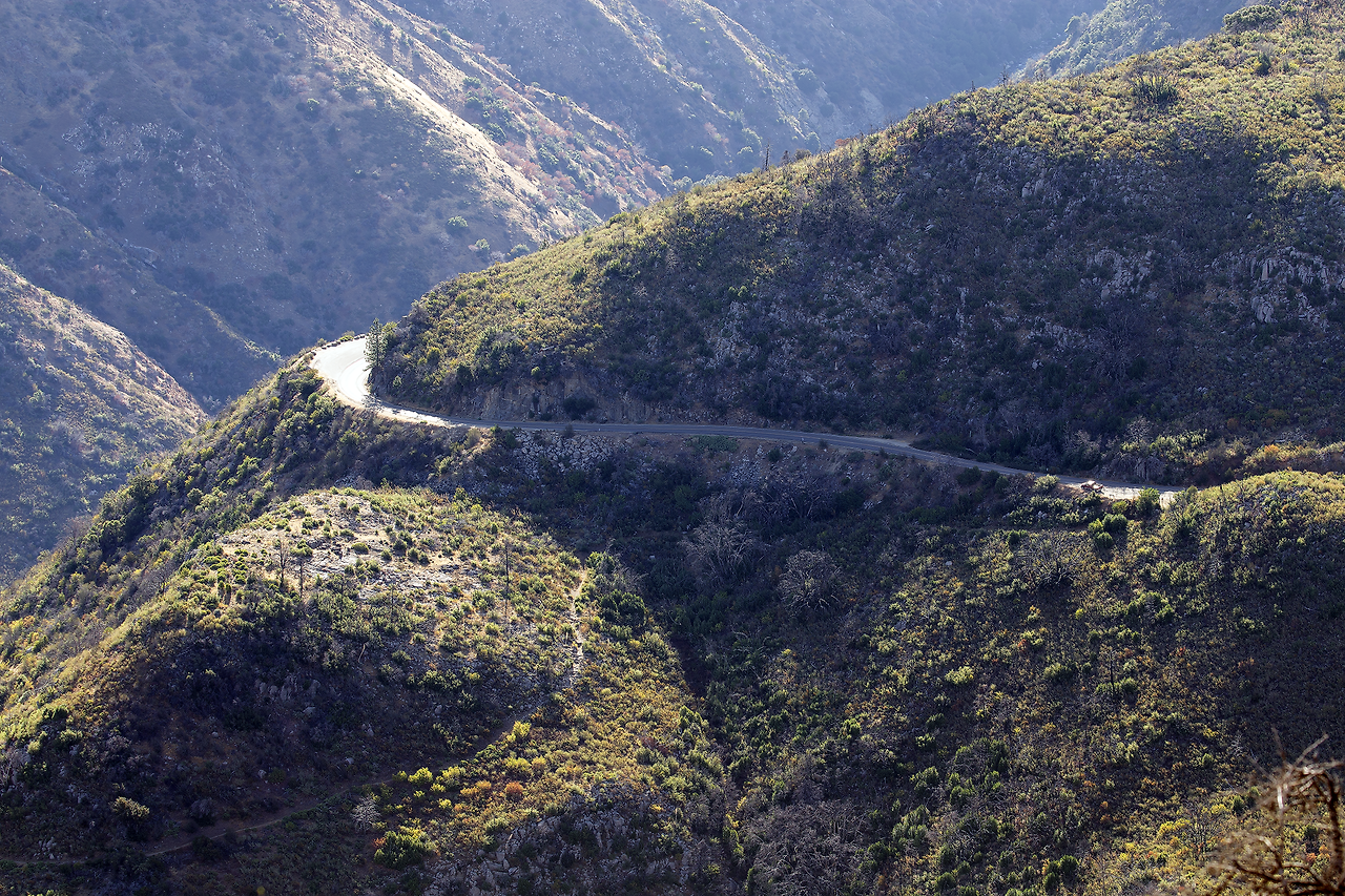 커브도로가 산모퉁이를 두 번 돌아 나가는데 이 커브길도 조심해야 하지만 오른쪽 길가에 작은 돌들로 가드레일처럼 만들어 놓은 그걸 넘어가면 2-300미터 높이의 계곡으로 곤두박질치게 된다.