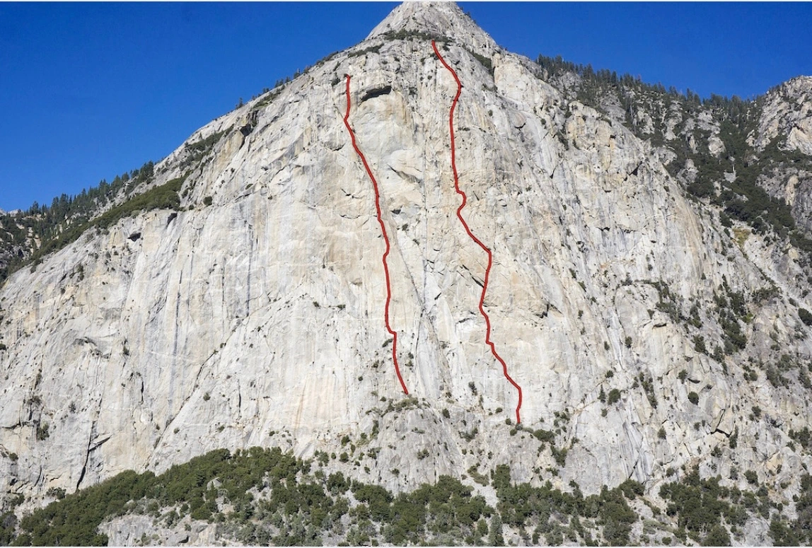 요세미티의 North Dome과 혼동할 수도 있다. 높이는 1527m로 트레일은 없고 Rock Climbing 하는 사람에게는 잘 알려진 명소라고 한다. 빨간 선이 주요 등반 경로라고 한다. 암벽등반은 나에게 그림의 떡일 뿐이다. - JH -