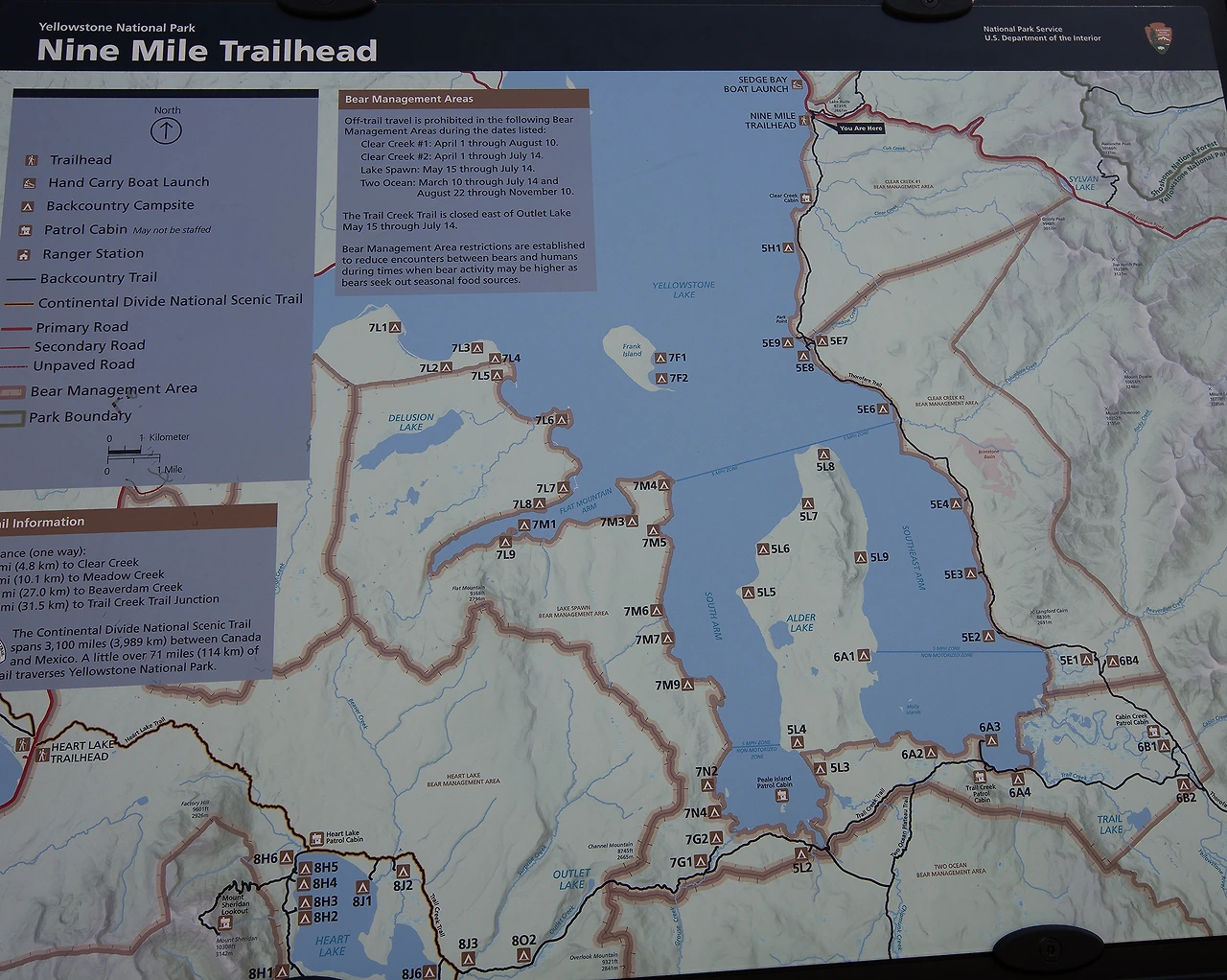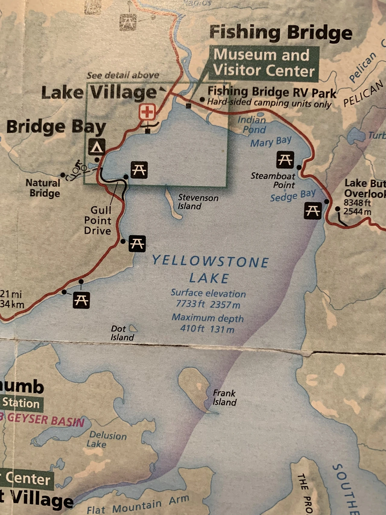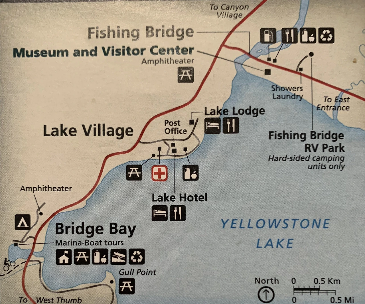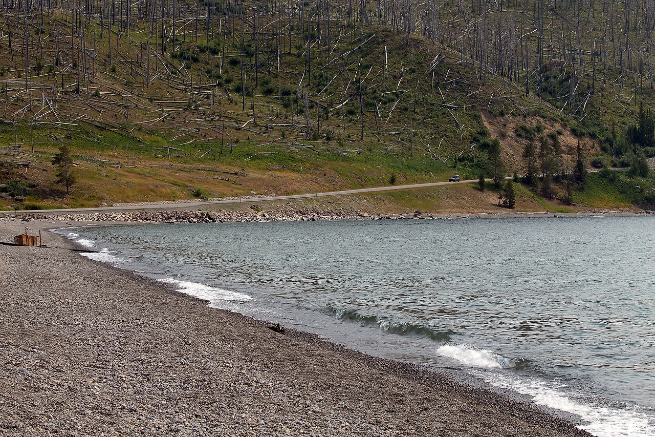 Lake Village까지 21마일, 그곳에서 동쪽 연안으로 11마일 정도 조성되어 있을 뿐이다. 옐로우스톤 호수 연안 총길이가 141마일인데 겨우 32마일 정도만 호수 연안 도로가 있다.