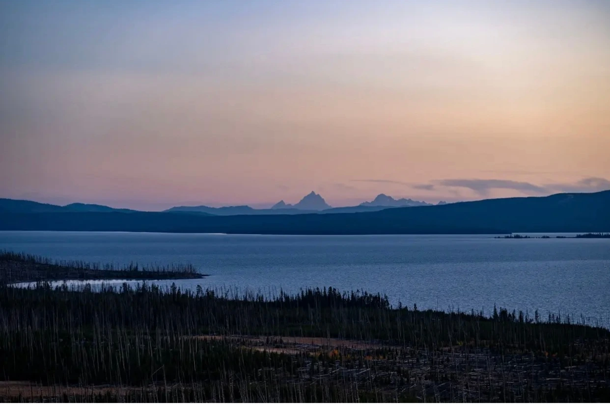 인터넷에서 발췌한 사진으로 여기 전망대에서 날이 맑아시계가 확보되면 Grand Teton 산들을 볼 수 있다고 설명하고 있다. 저 멀리 희미하게 솟아 오른 산줄기가 바로Grand Teton 산맥인 모양이다.