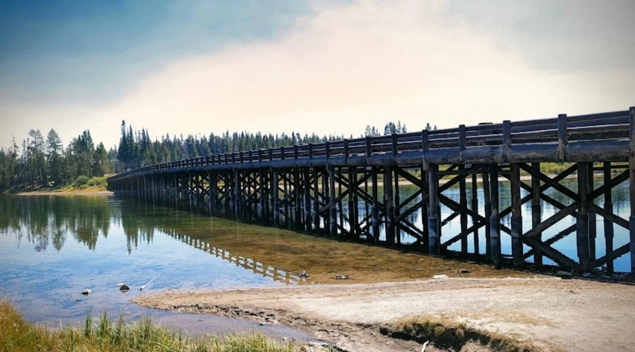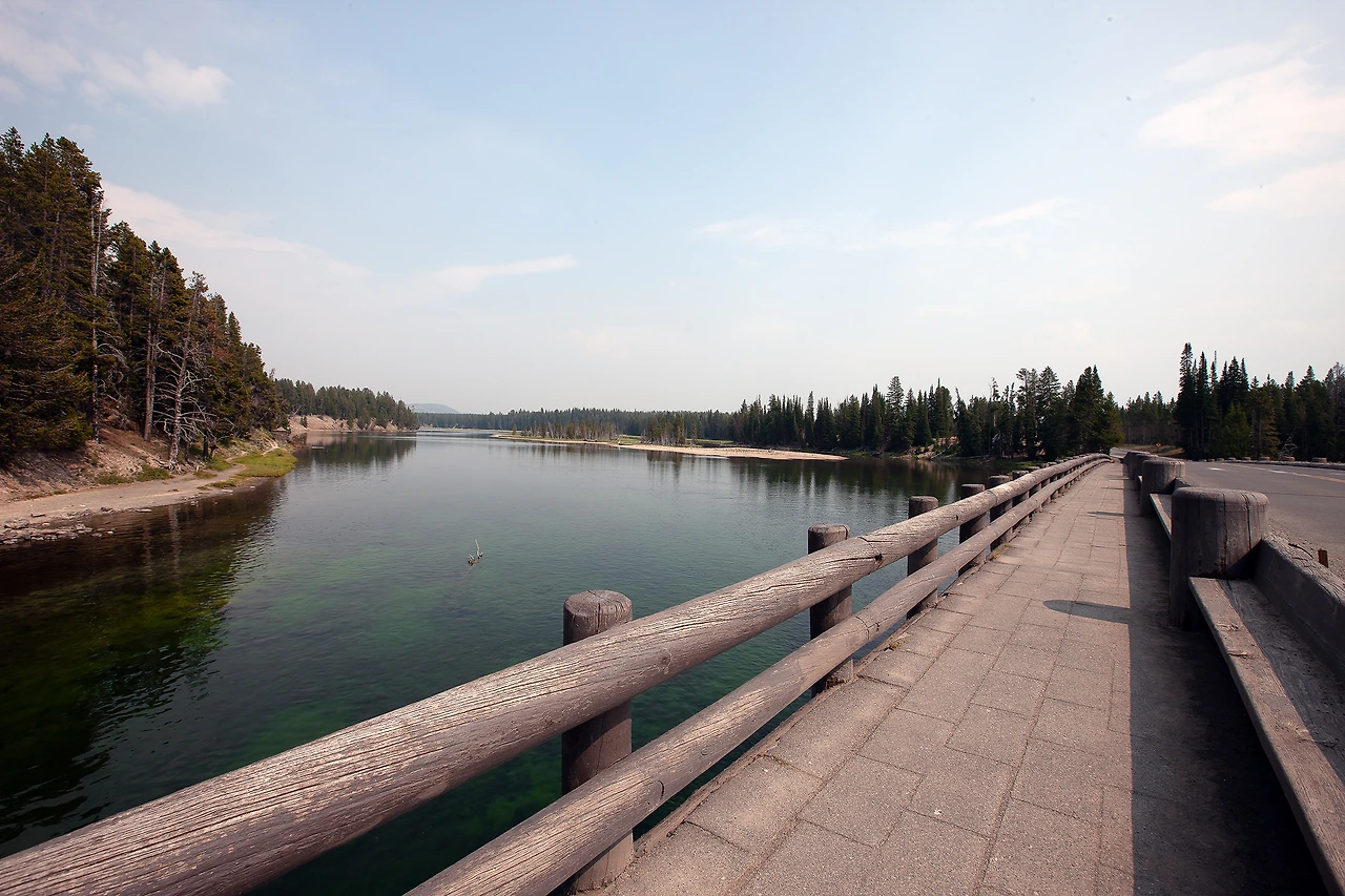 차를 파킹장에 세워두고 걸어서 Fishing Bridge를 건넜다. 위 지도를 보면 호수로 유입되는 강줄기가 있는데 그강물이 바로 옐로우스톤의 그랜개년이라고 자랑하는 협곡을 흘러내린 Yellowstone River다. Fishing Bridge는 호수로 유입되는 그 강을 건너는 다리다.
