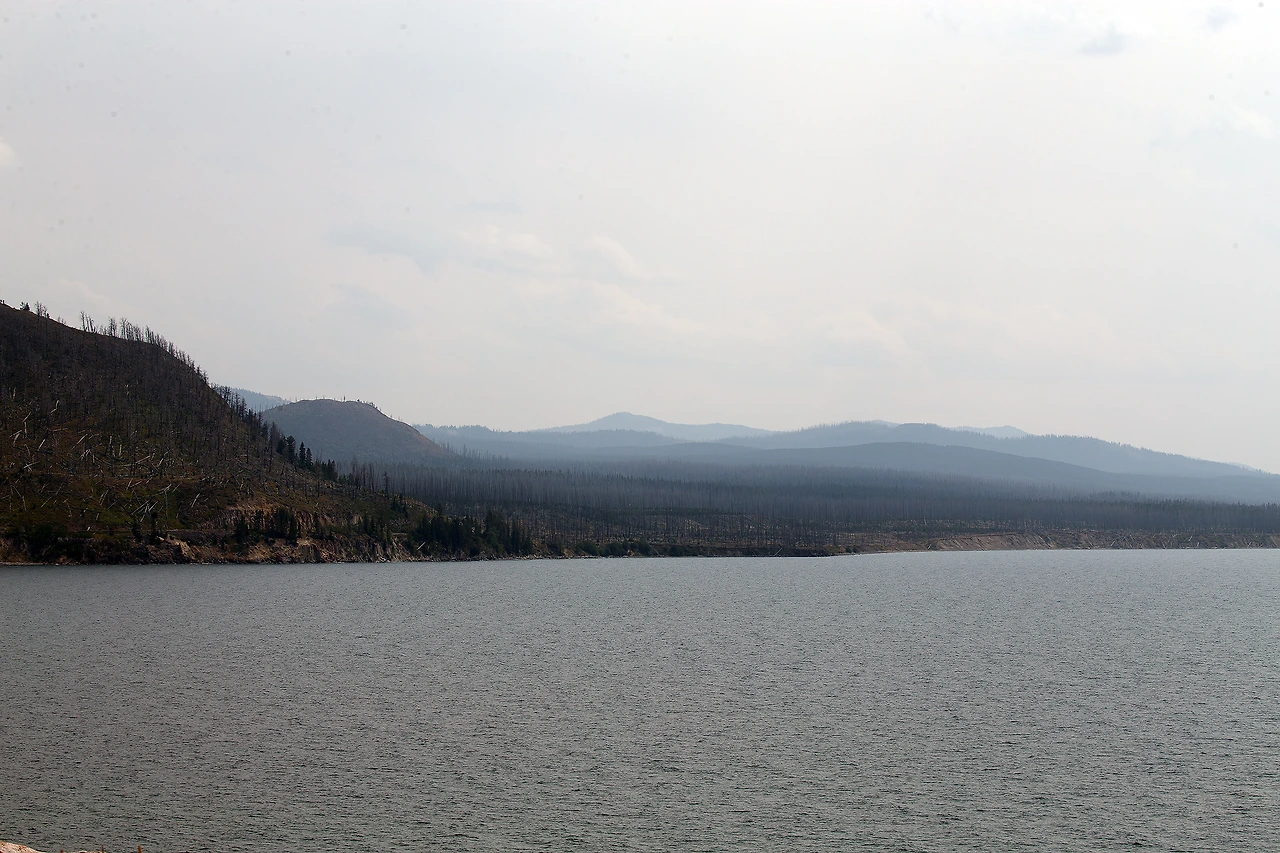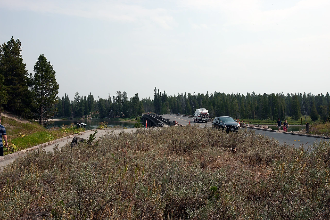 Fishing Bridge만 걸어서 건너보고 다시 파킹장으로 돌아와서 차로 Fishing Bridge를 건너 호수 동쪽 연안을 따라 달렸다. 날씨도 맑아 드라이브하기에도 괜찮은 편으로 아무 생각 없이 호수를 오른쪽 품에 끼고 길을 달렸다. 간간이 RV차량들도 눈에 띄었다. 이 동쪽 도로를 끝까지 27마일 달리면 공원 동쪽 출구가 나온다,