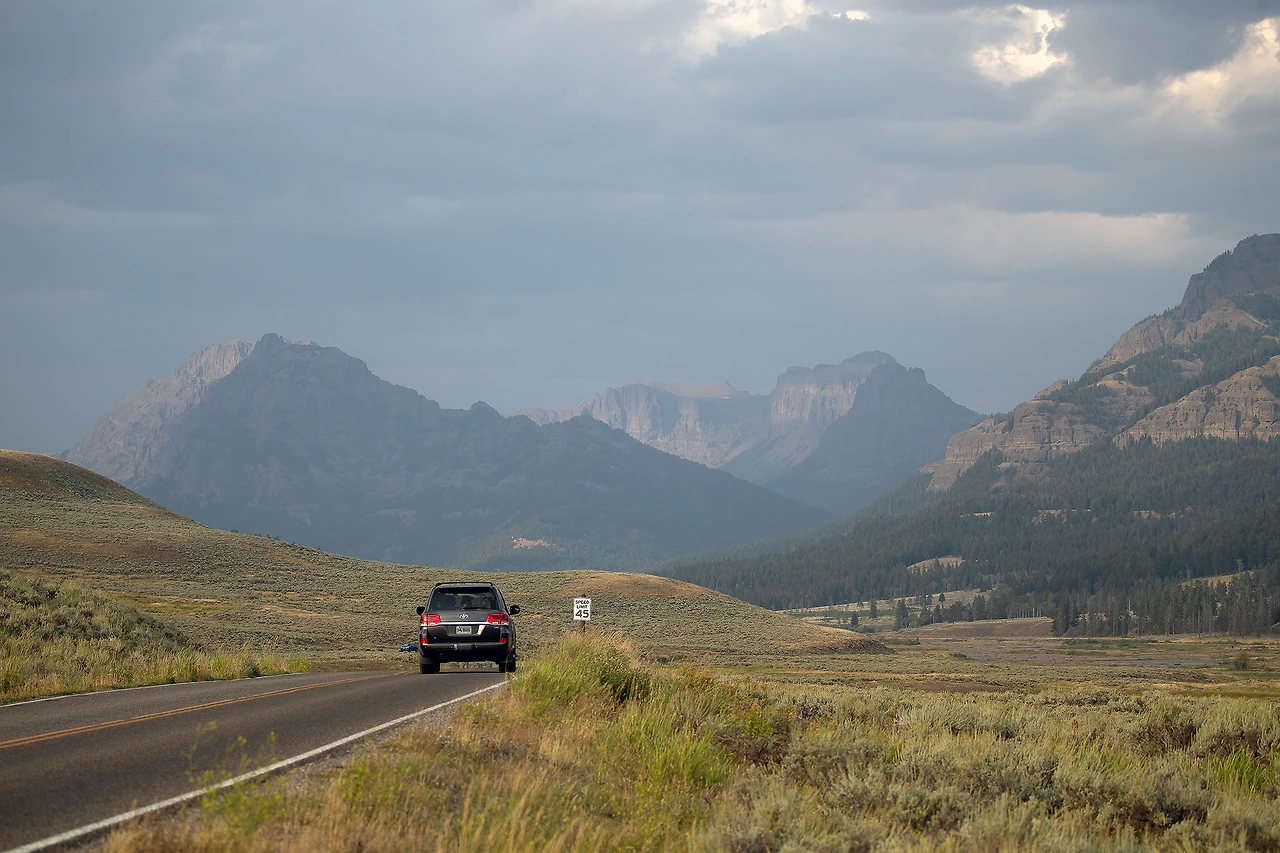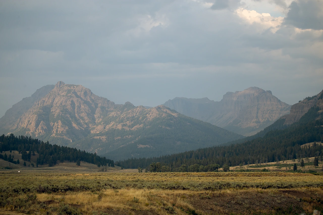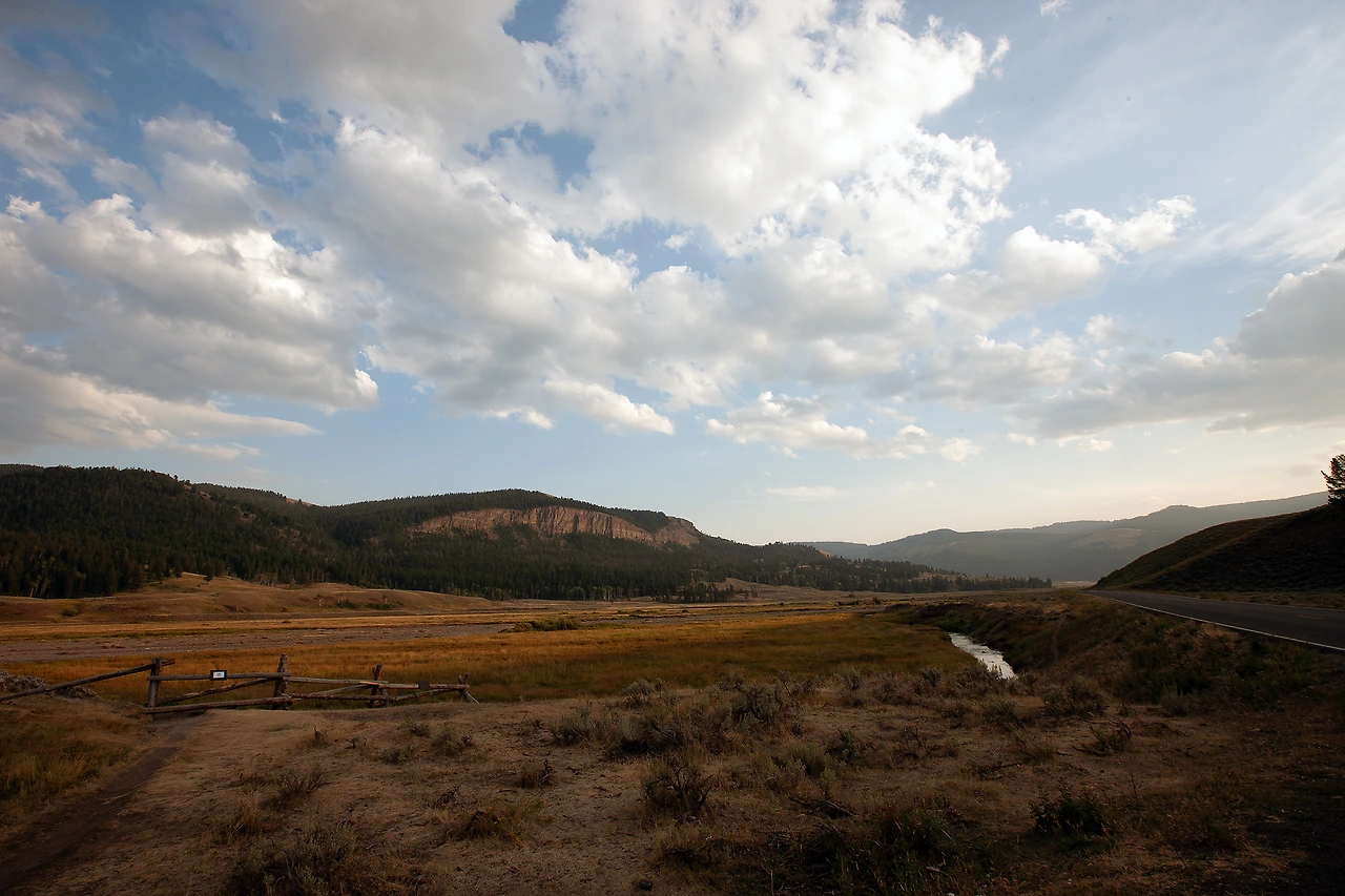 저 뒤로 웅장하게 버티고 있는 계곡이 Lamar Valley로 들소, 영양, 곰과 늑대 같은 야생동물이 풍부한 곳으로 야생동물 가이드 투어가 가능한 곳이다.